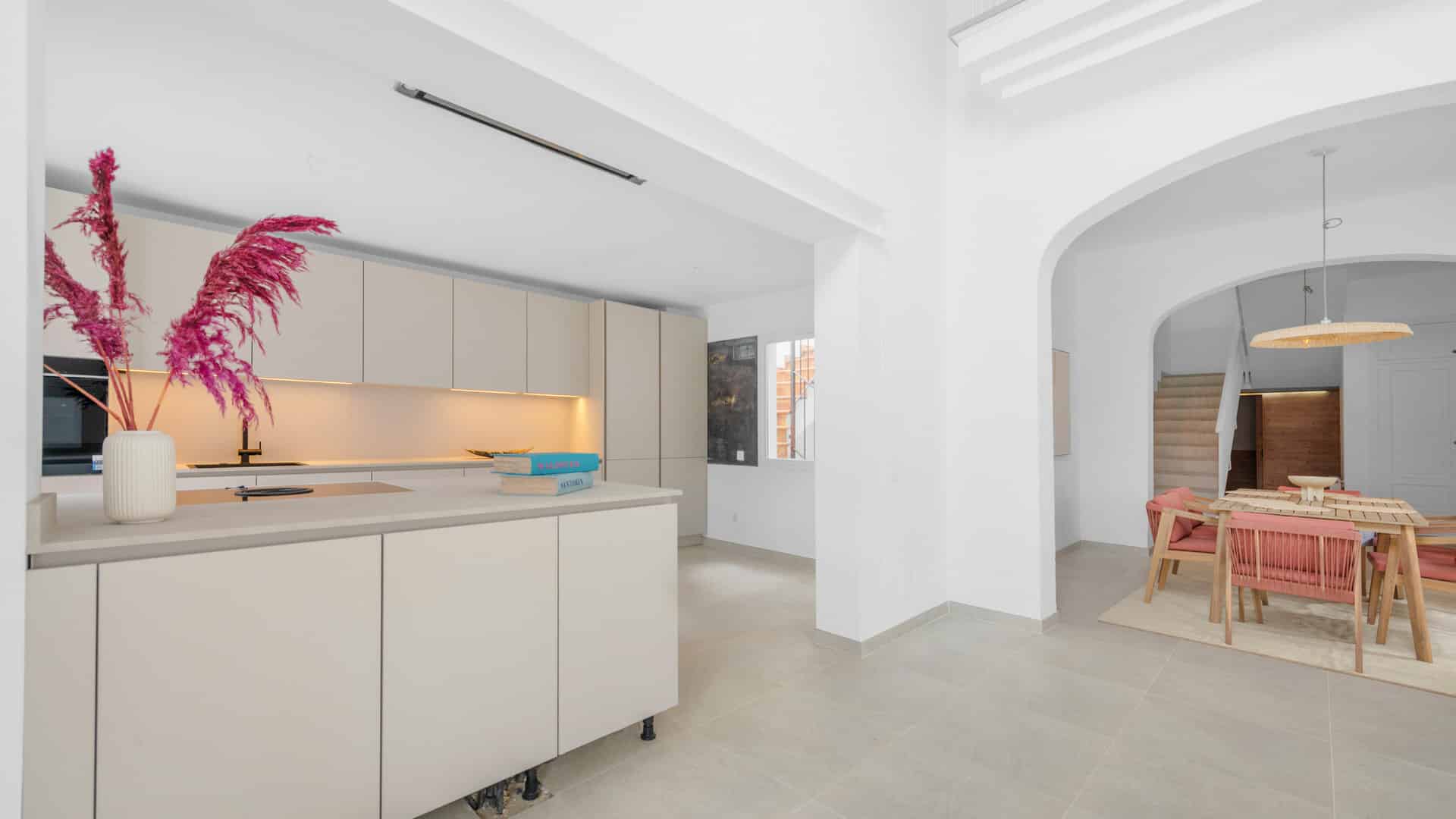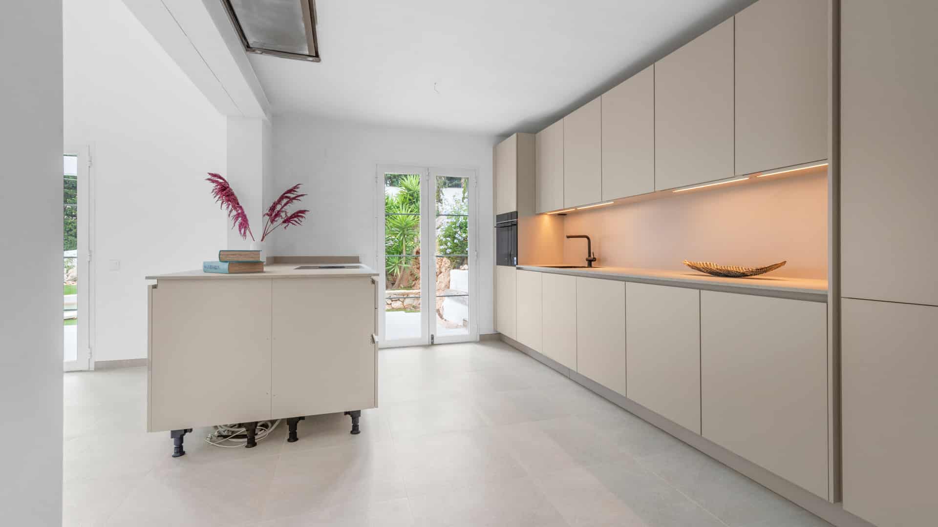 The villa’s architectural highlights include soaring ceilings of approximately 8 meters, creating an expansive, light-filled ambiance throughout. At the heart of the home is a sleek, modern open-plan kitchen, ideal for culinary enthusiasts and gatherings with loved ones.