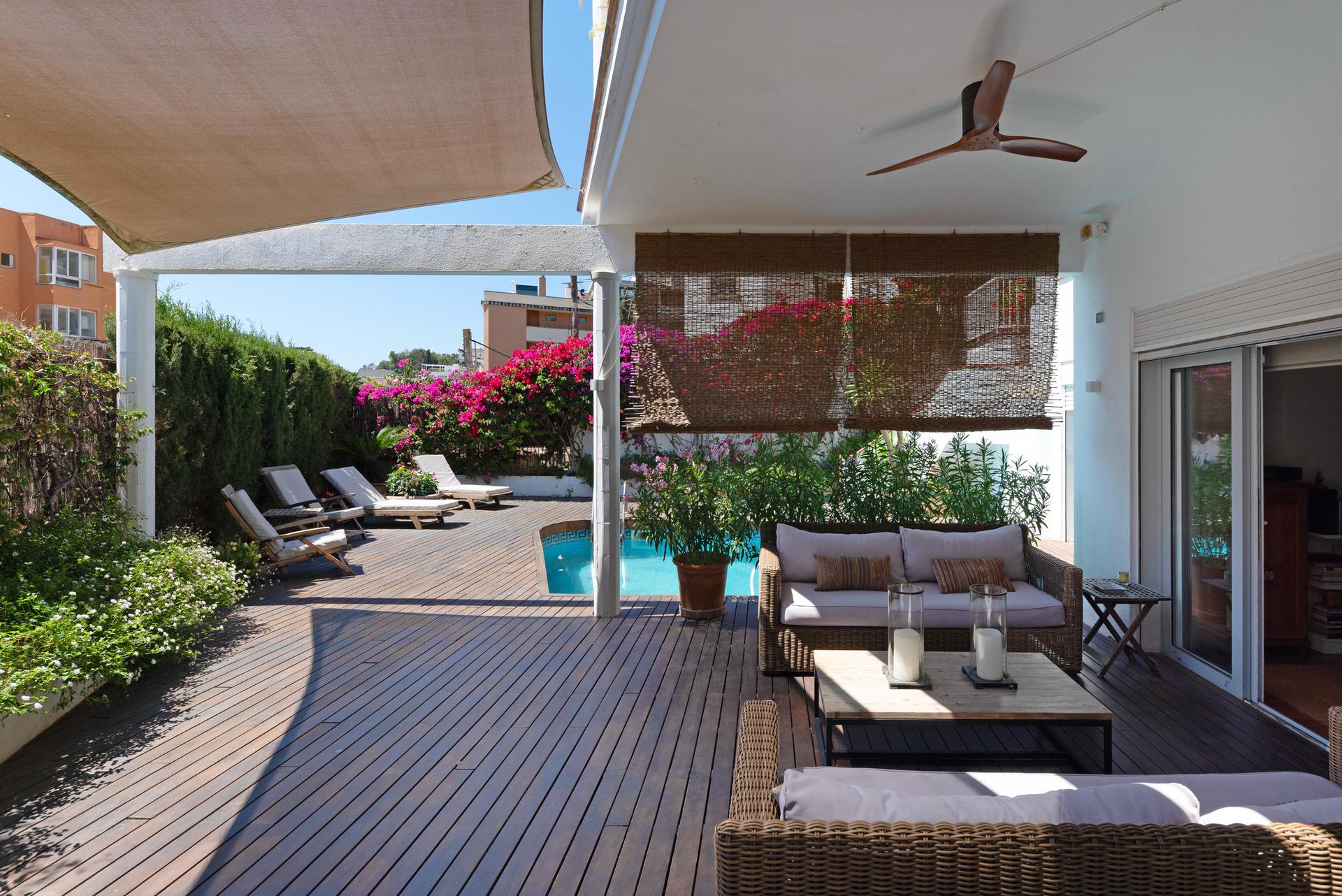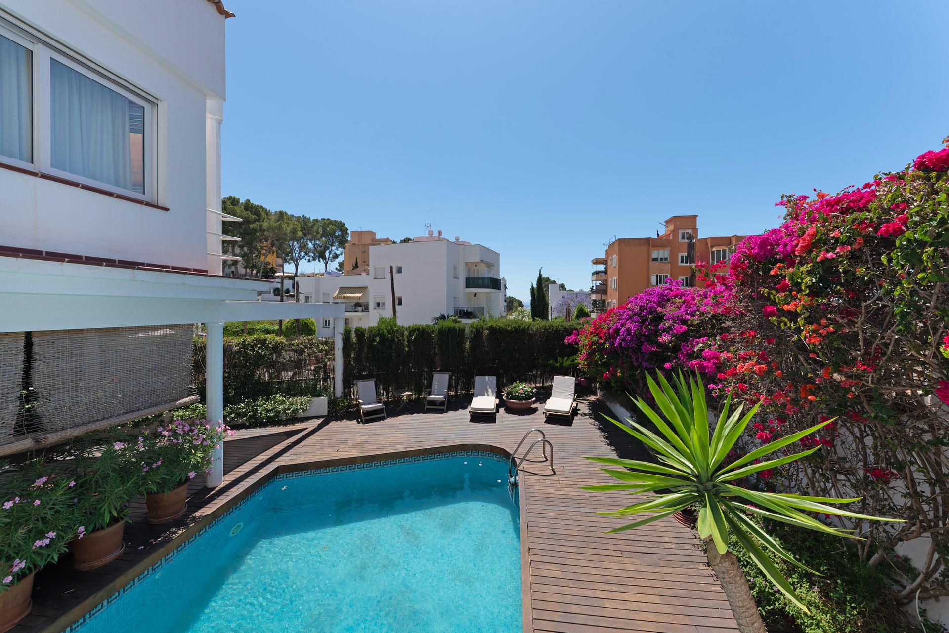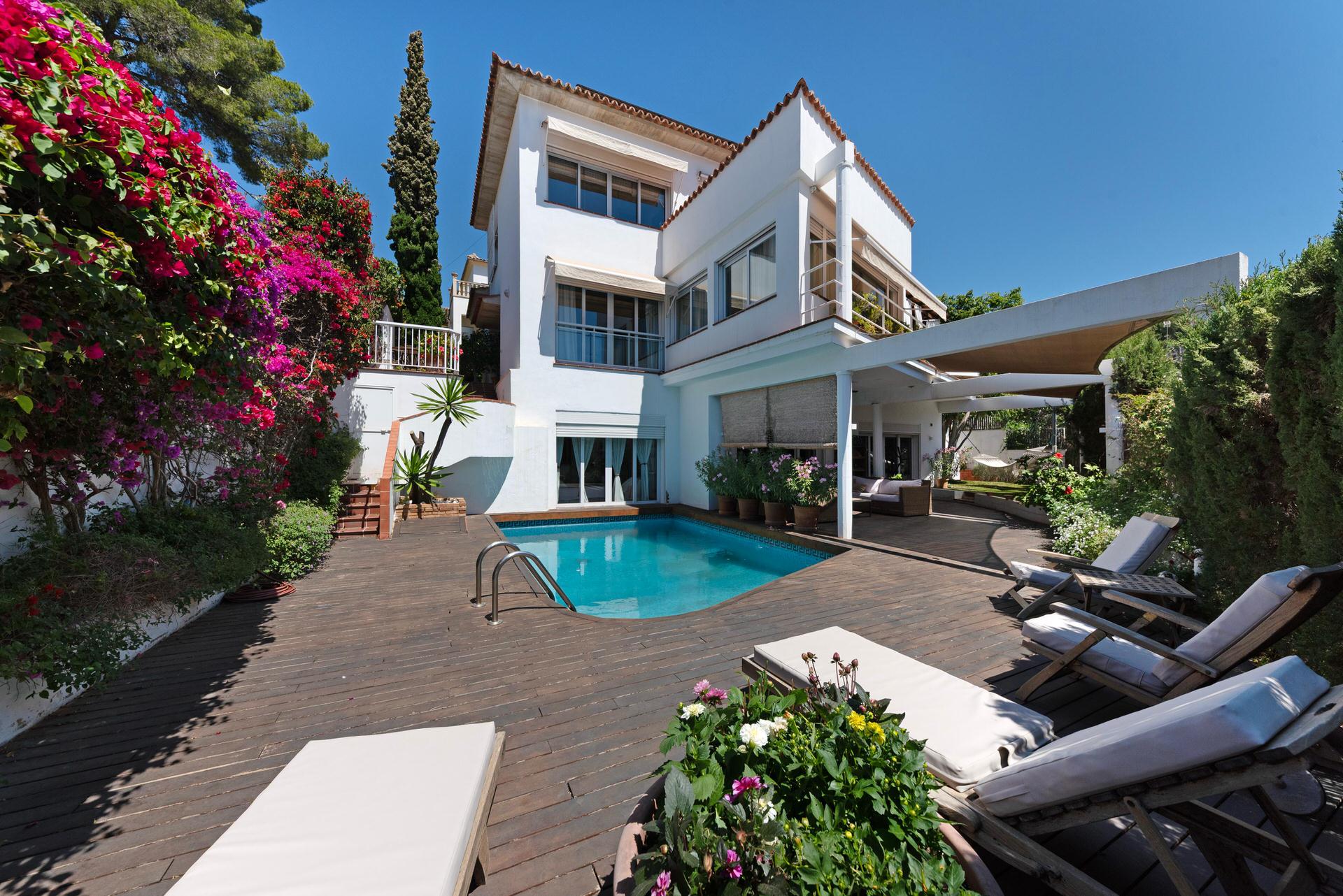 Spacious three-storey villa plus garage in San Agustin with partial sea views, pool and garden.