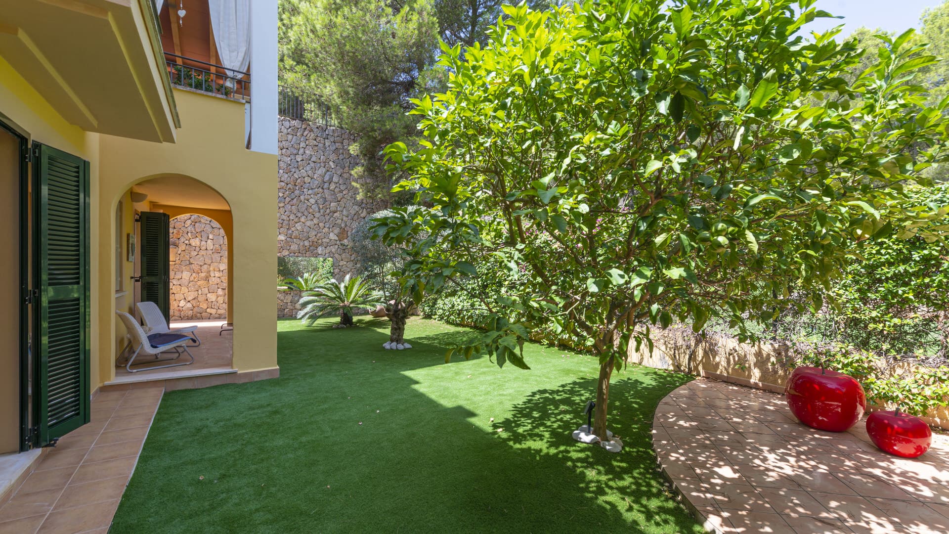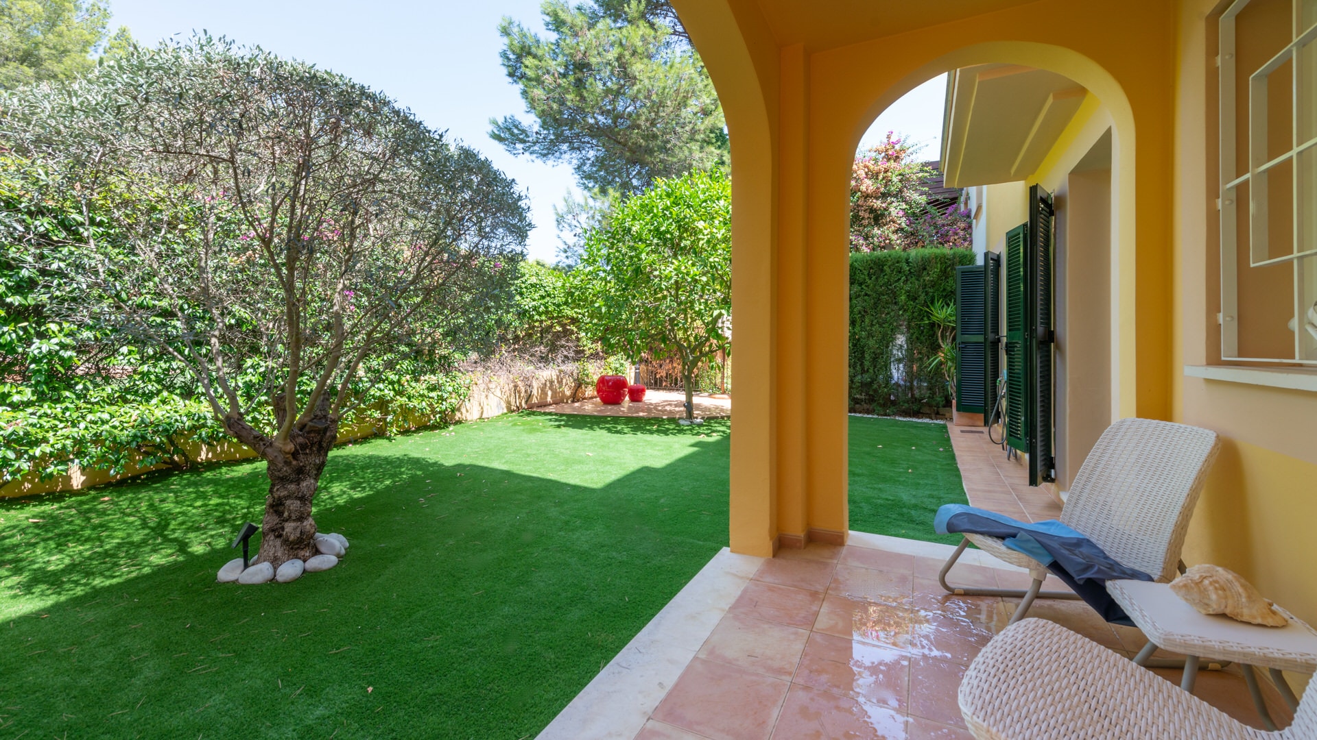 There are plenty of sunny and shady spots to enjoy the Mediterranean temperatures. The residential complex offers a beautifully maintained communal garden with a large pool.