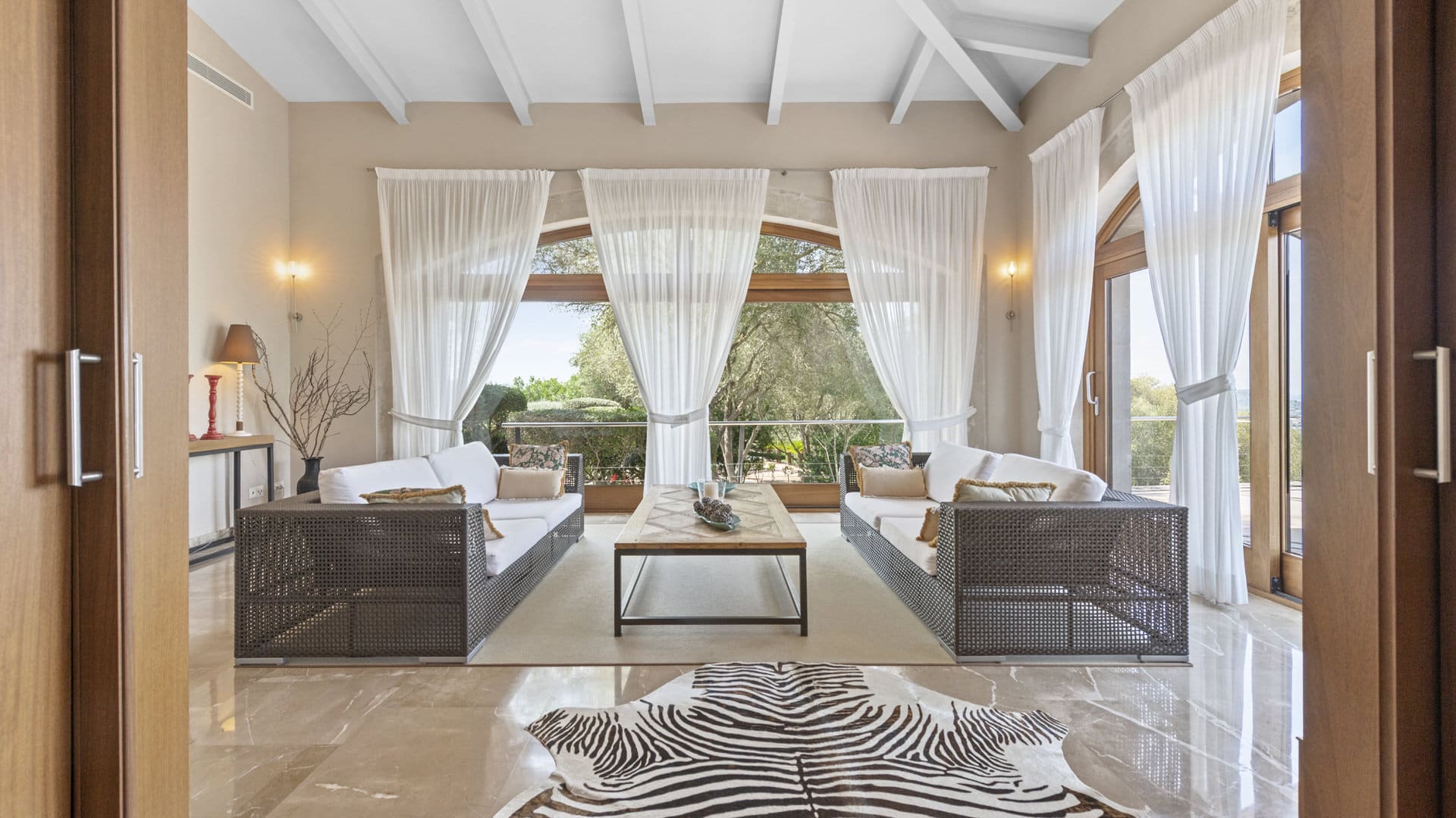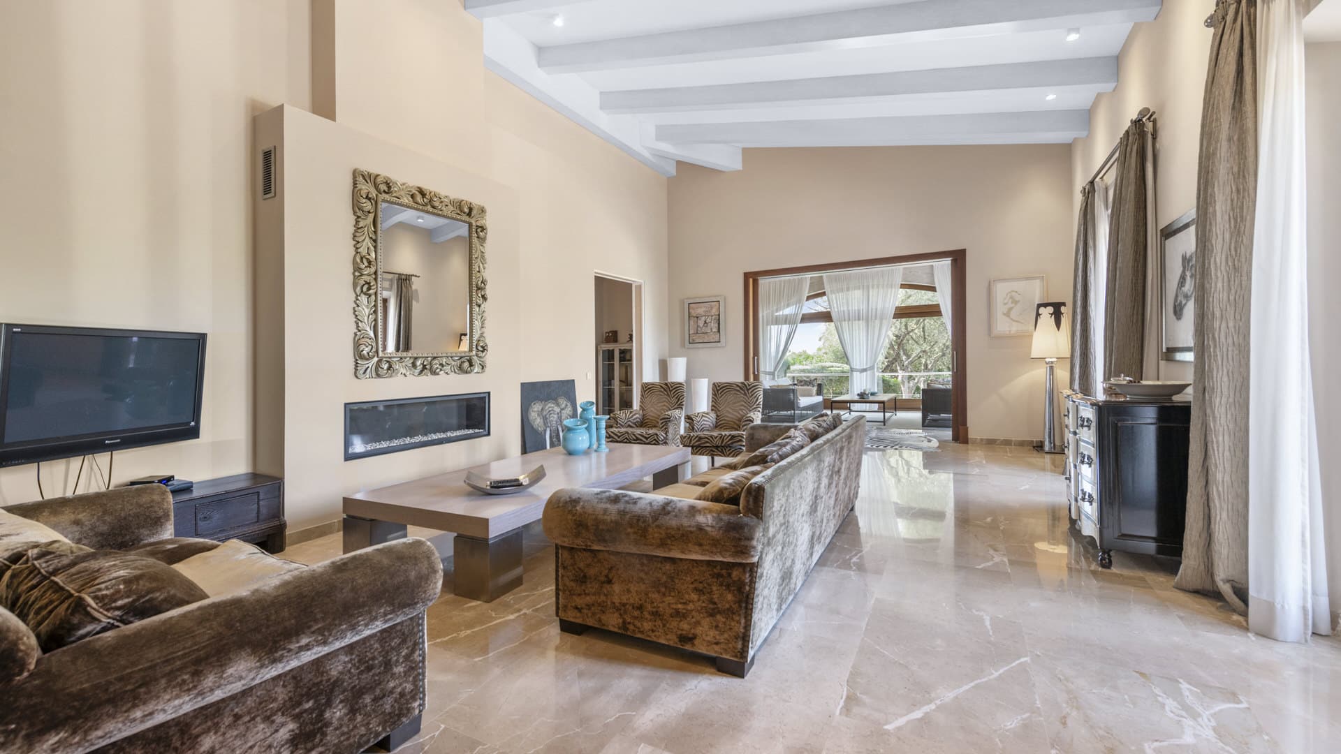 The living area of Finca La Vita has polished marble floors. The furnishings are exclusive.