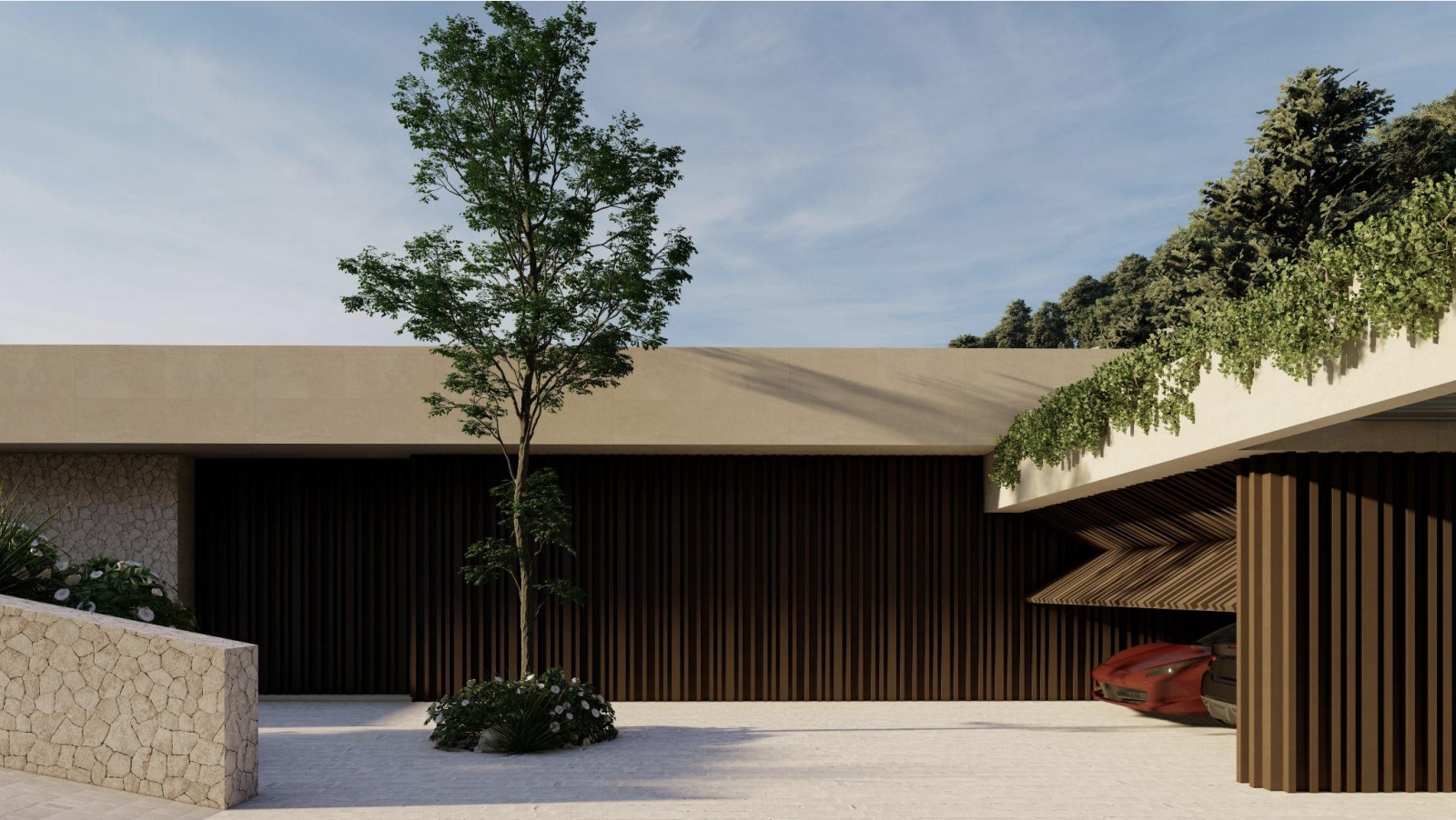 On a plot of approx. 2,380 m², an exclusive villa project is being built that will meet the highest standards of architecture, design and quality of life. The planned villa with a living area of approx. 979 m², spread over three levels, offers you a generous amount of space for individual living dreams.