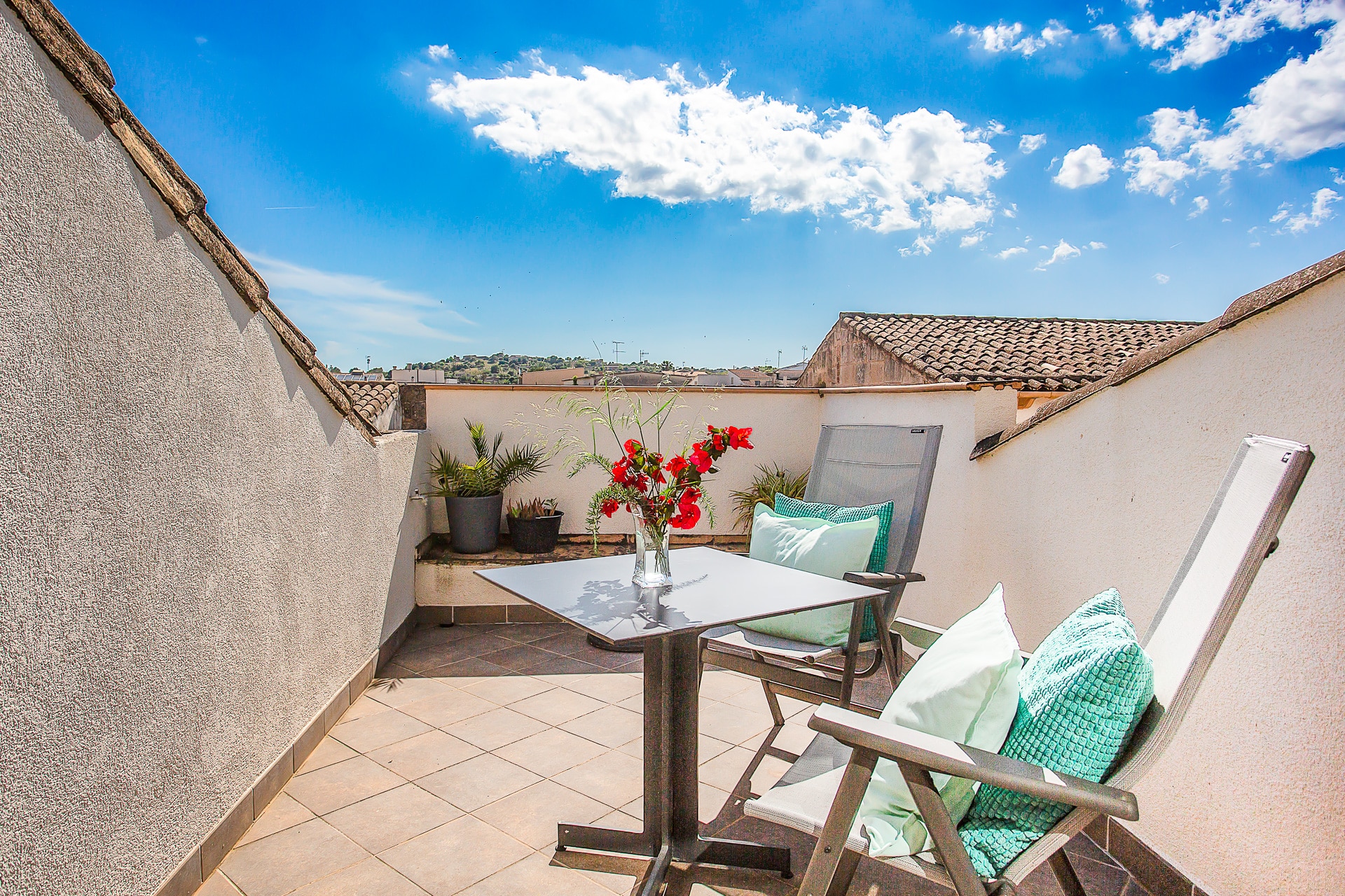 Another staircase takes you to the second bedroom and directly to the beautiful roof terrace, from where you can enjoy a breathtaking view.
