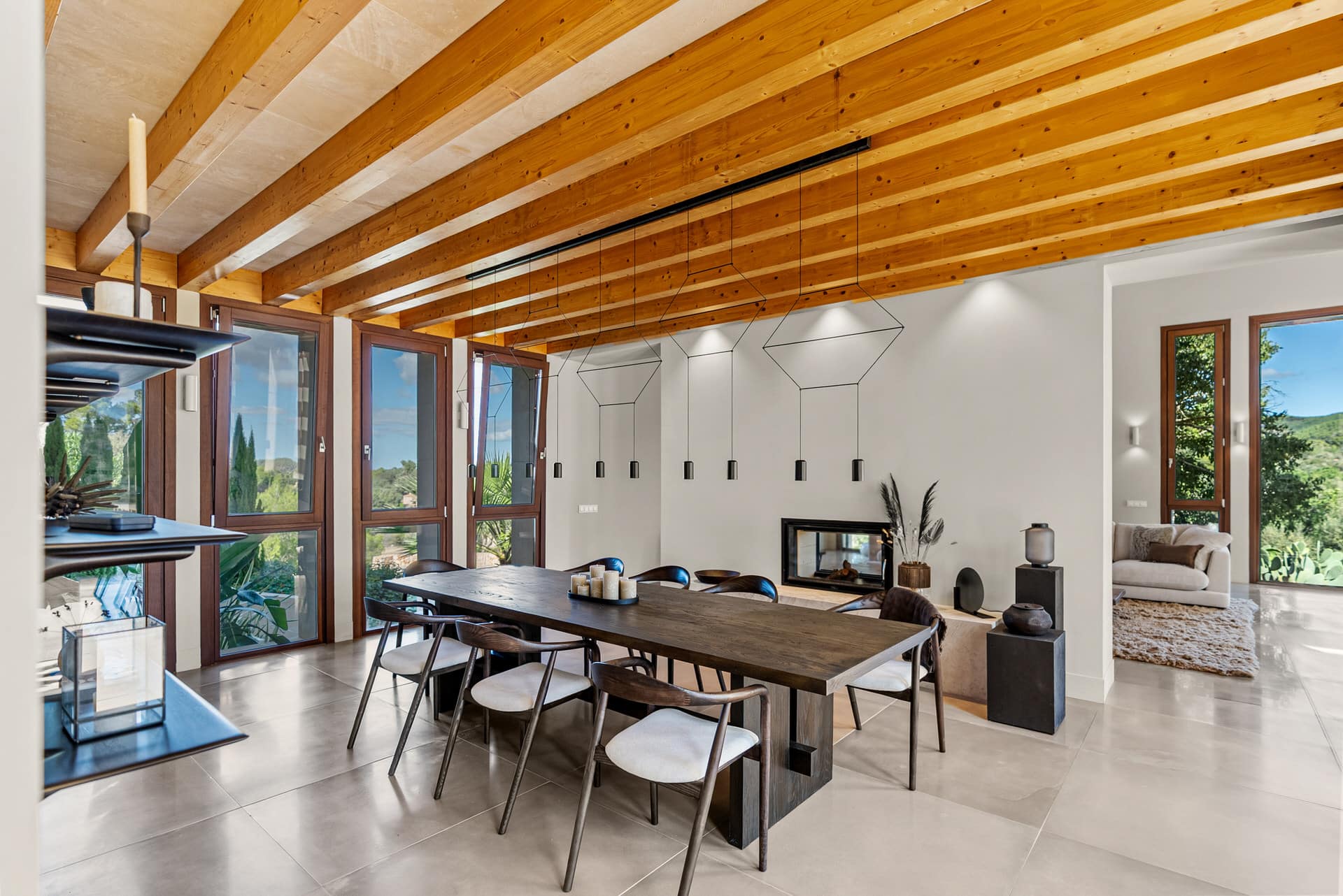 Five spacious bedrooms, each with an en-suite bathroom, create a feeling of generosity and tranquillity. Fine materials, clean lines and warm natural tones characterize the interior design and give the house a timeless aesthetic. Spacious terraces and lovingly designed gardens surround the finca and open up breathtaking views over the Mediterranean landscape. The infinity pool seems to merge with the surrounding nature and invites you to enjoy the tranquillity and beauty of the Mallorcan landscape to the full.