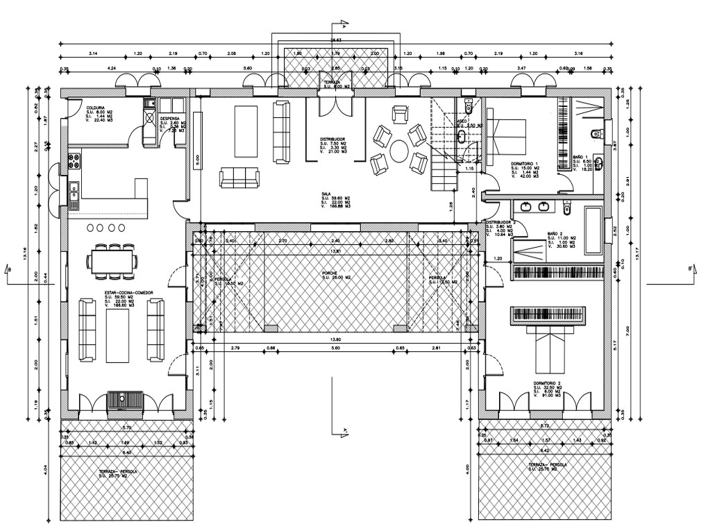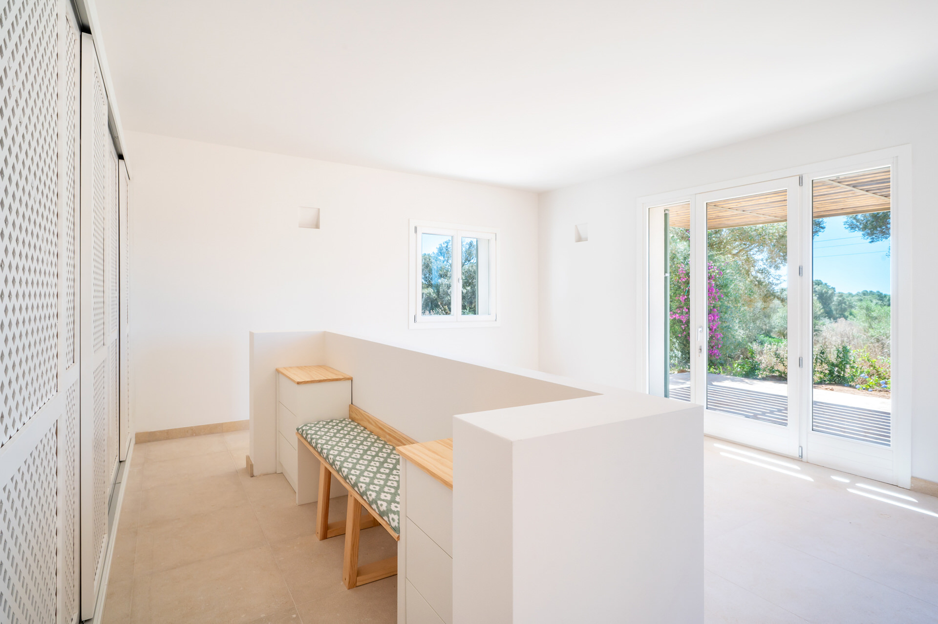 Lage: This Mediterranean new construction inca is located just minutes from the magnificent beaches of S'Arenal and Es Trenc, the latter of which has been declared a natural park with its pristine sand dunes. It is located in the heart of the municipality of Campos, a town founded in the 14th century with fertile reddish soil suitable for irrigation crops, where various native plants such as capers grow wild and ideal for growing olives and fruits.