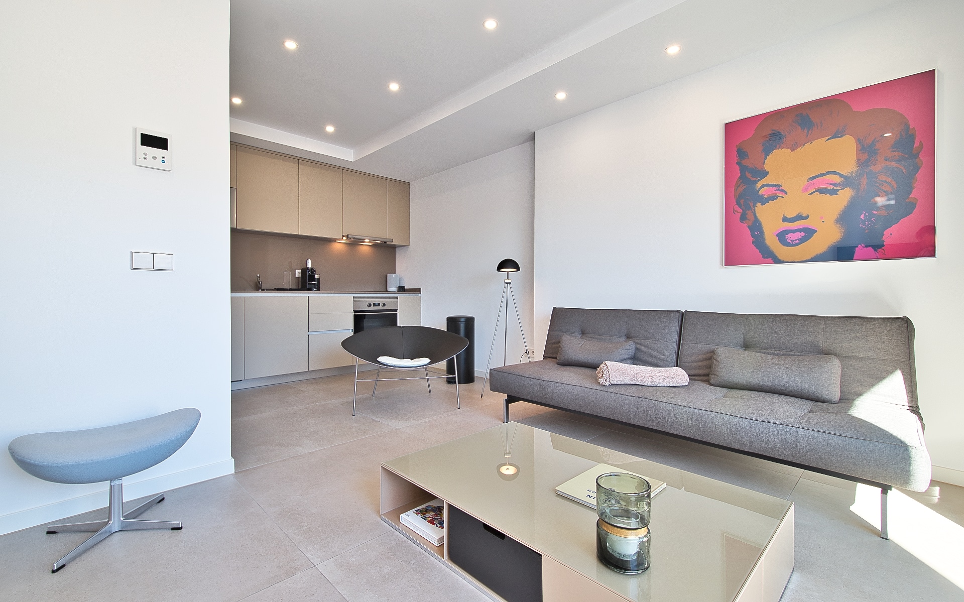 The living area of this property is approximately 78 m² which is distributed over two floors as follows: the upper floor offers an open and fully equipped designer kitchen, a sunny living/dining area with direct access to the sunny terrace. The lower floor has two cozy bedrooms and two bathrooms. The high-quality designer furniture is included in the sale price.