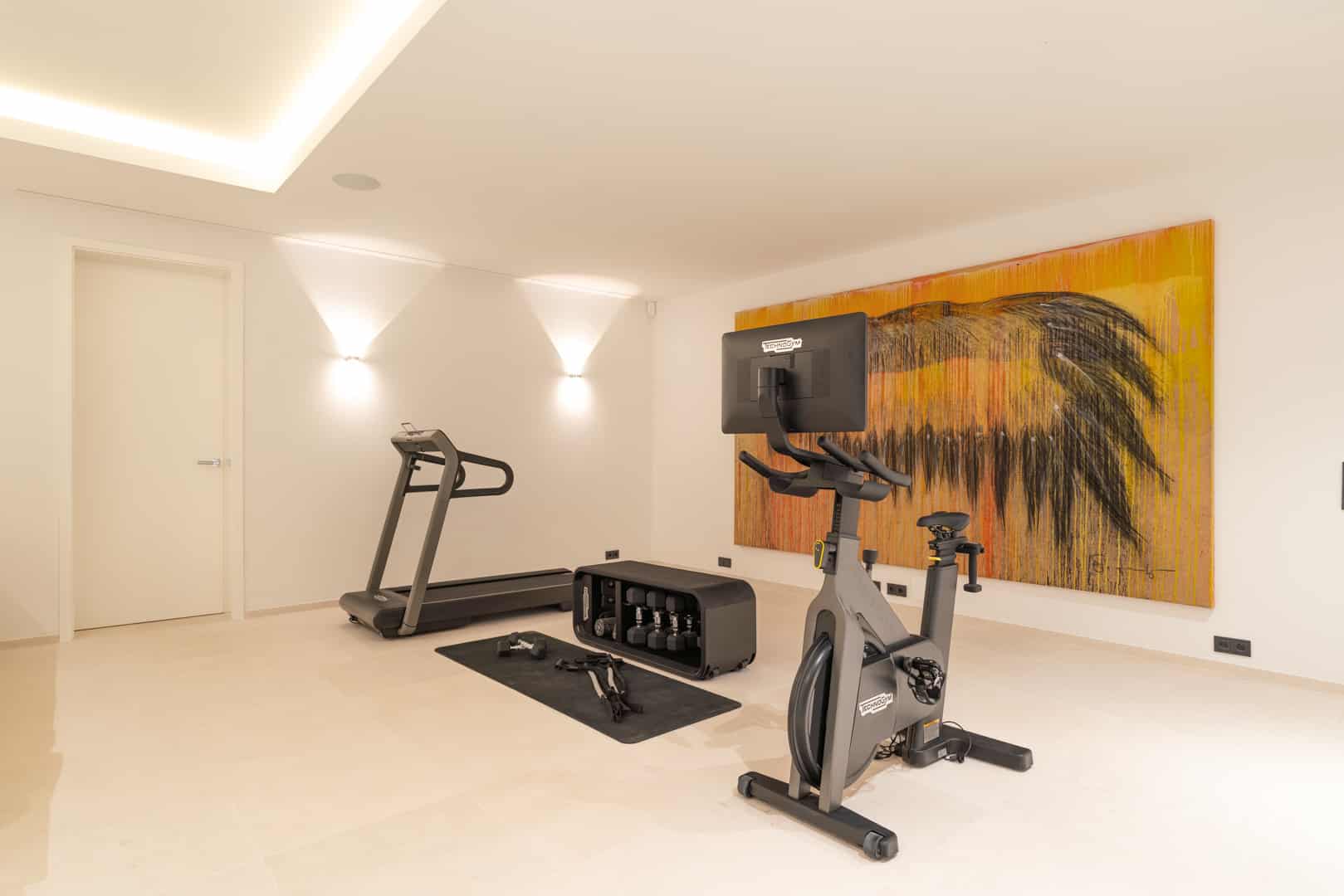 Underground garage for up to 7 cars with electric turntable for cars in the driveway area, floor-to-ceiling & double glazed windows, fireplace, underfloor heating, air conditioning, elevator, saltwater infinity pool, domotics and much more.