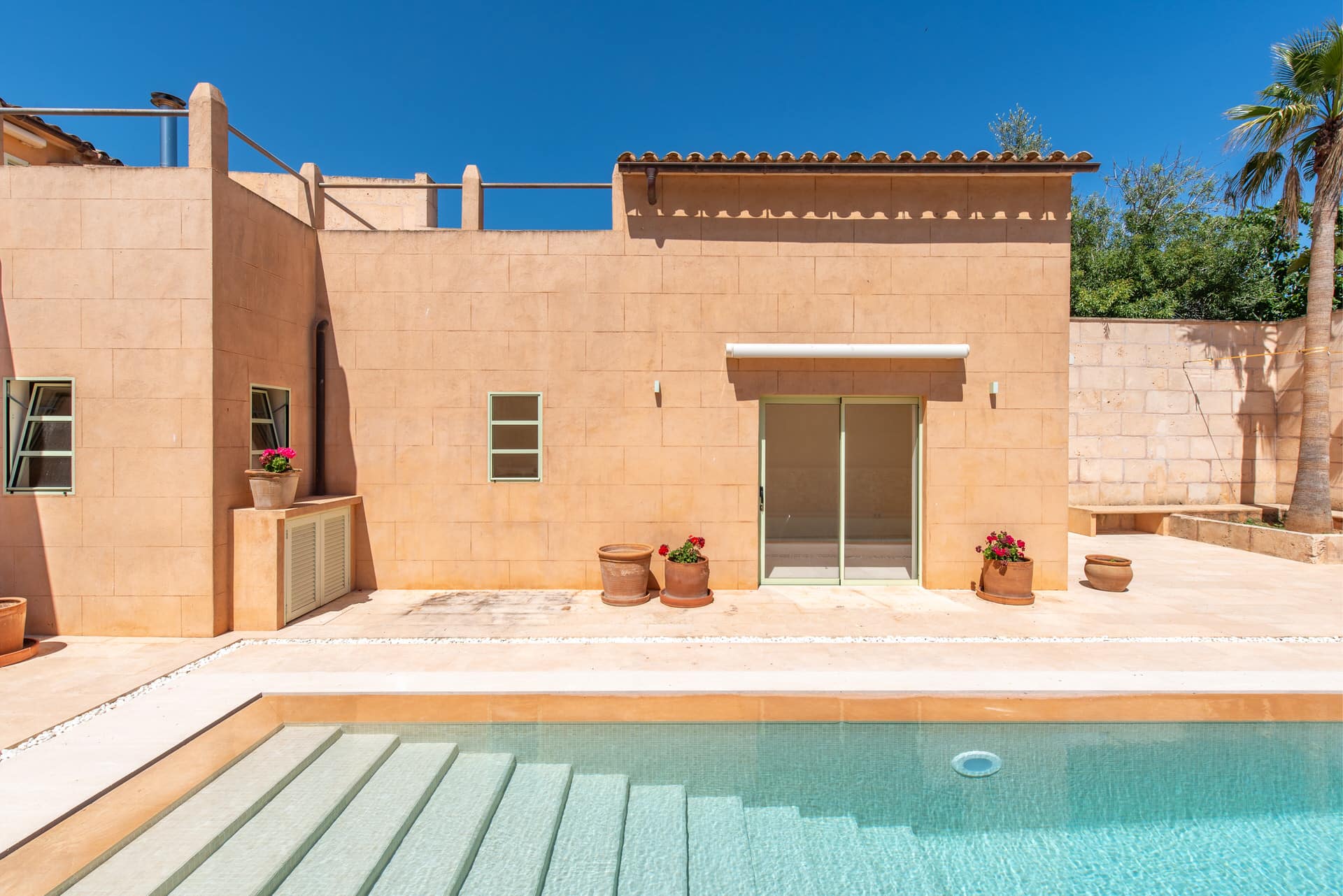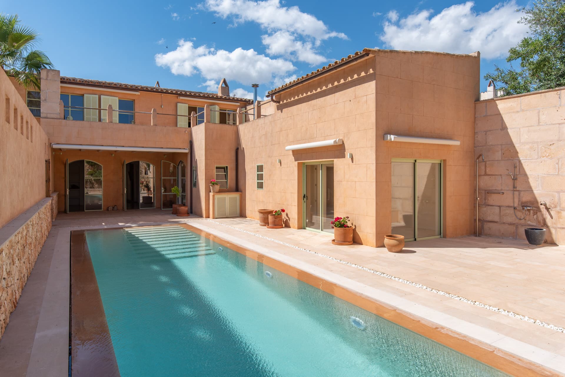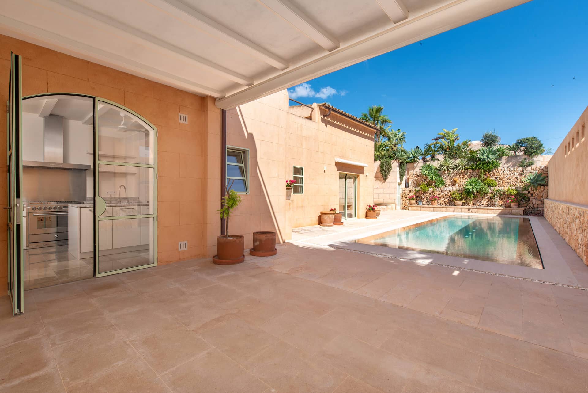 In a prime location in the charming center of Ses Salines, this exclusive townhouse is a real gem. As soon as you enter, your gaze is drawn to the characterful natural stone façade and the idyllic garden with infinity pool - a first impression that will leave a lasting impression.
