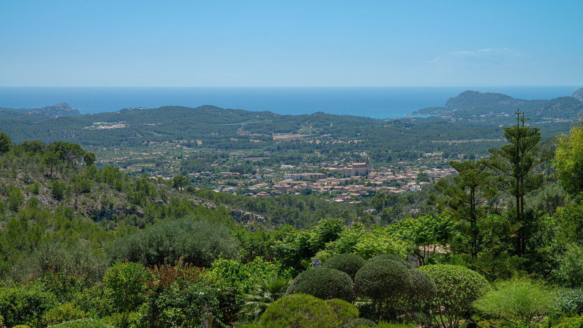 Unique villa in the exclusive residential area of Son Font above Calvia, with breathtaking panoramic views over the countryside to the sea.