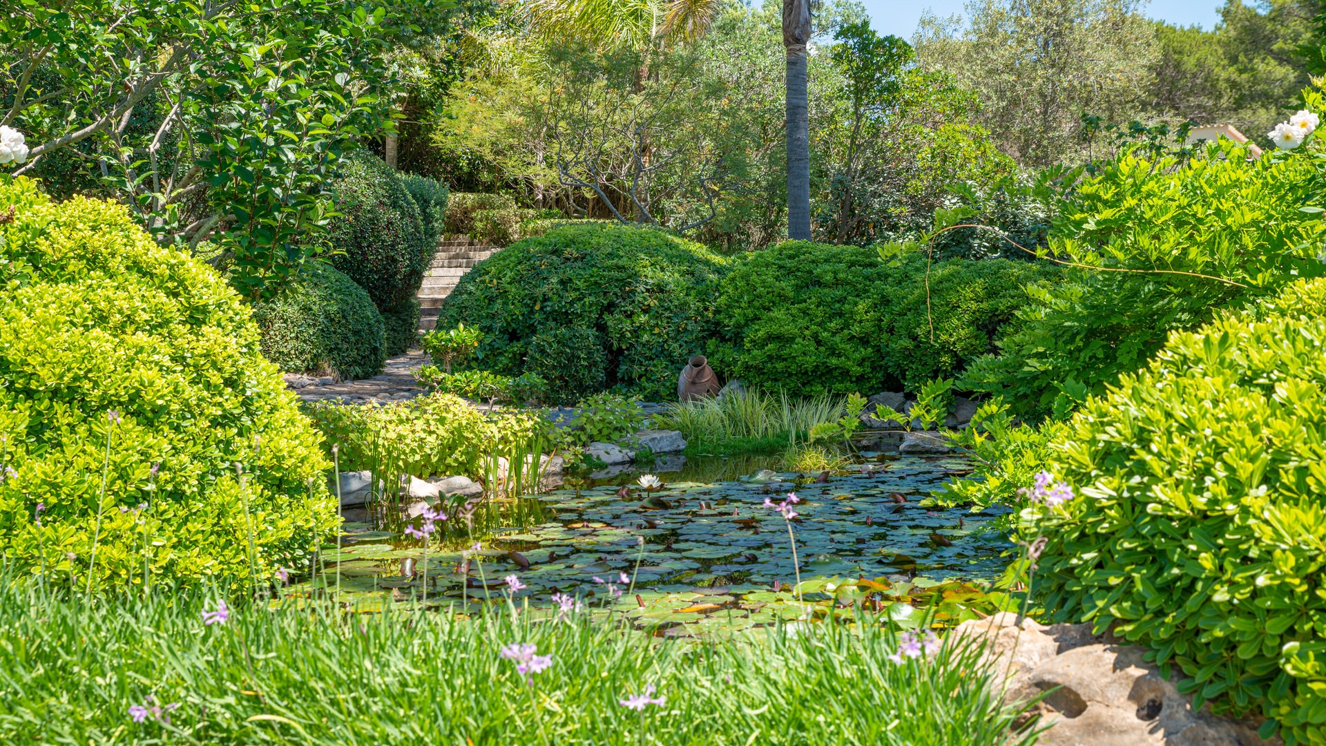 The absolute highlight of this Mallorca property is the impressive Japanese-style garden with exotic plants, a pavilion with bonsai bougainvillea, fruit trees, magnolias, jacarandas, bamboo walls, roses and much more.