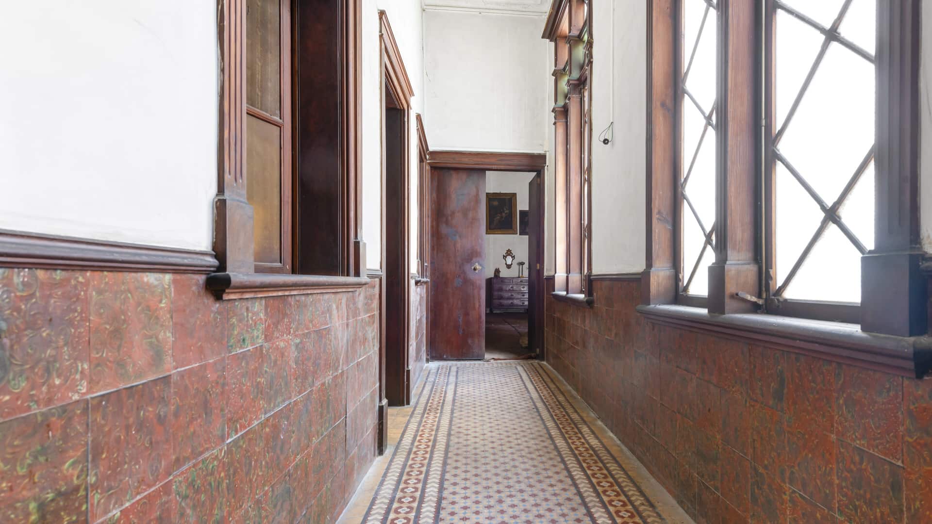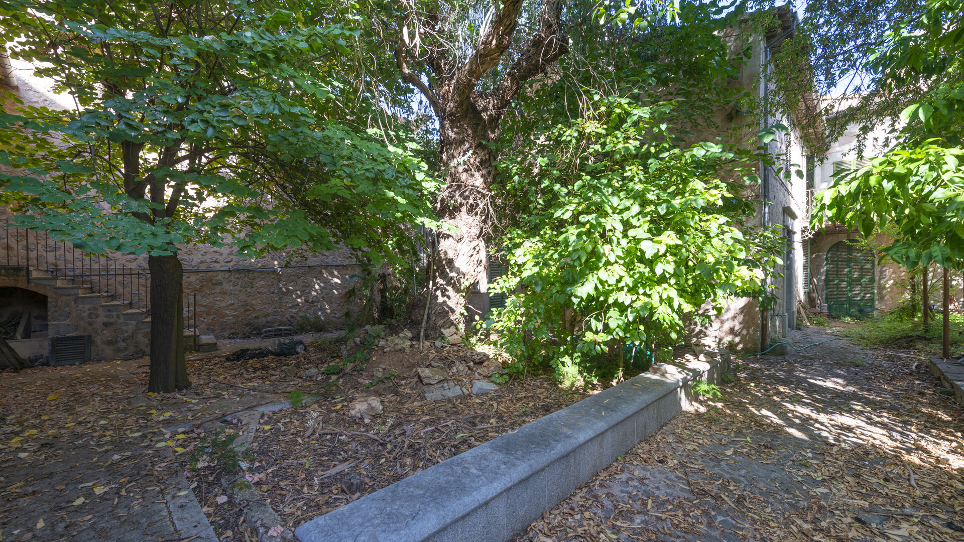 The living space is about 600 m² and extends over three levels. The building offers several living rooms, a separate kitchen, a dining room, a total of six bedrooms, three bathrooms, a laundry room and a storage room. Outside, there is a large landscaped courtyard with the possibility of building a swimming pool. The rear part of the building has been partially renovated and has a garage for one vehicle. This area could also be used as a separate guest area to give visitors some privacy. The special features of this property are the high ceilings, some of which have original wooden beams, the hydraulic floor tiles, the original round arches and numerous historical elements that make this building very special.