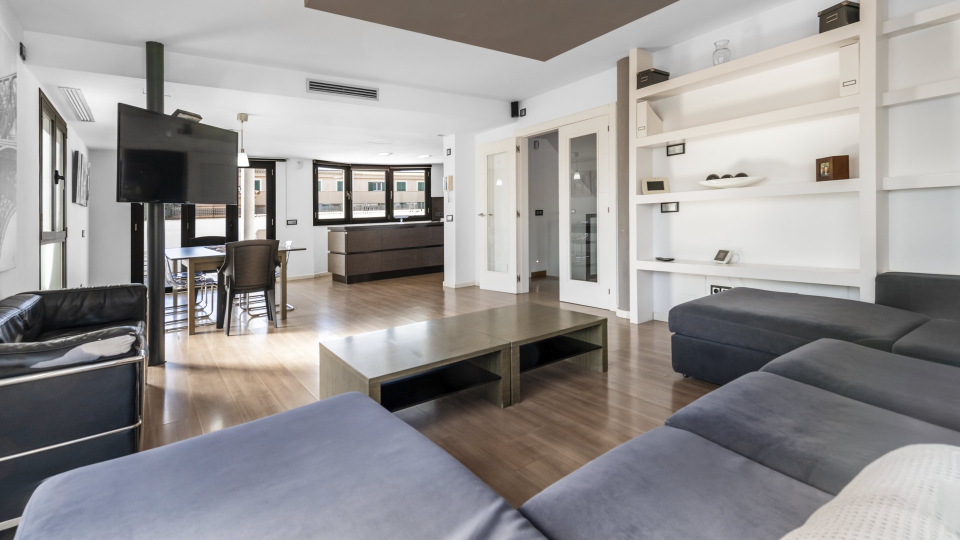Parquet floors, tilt and turn aluminum windows with double glazing