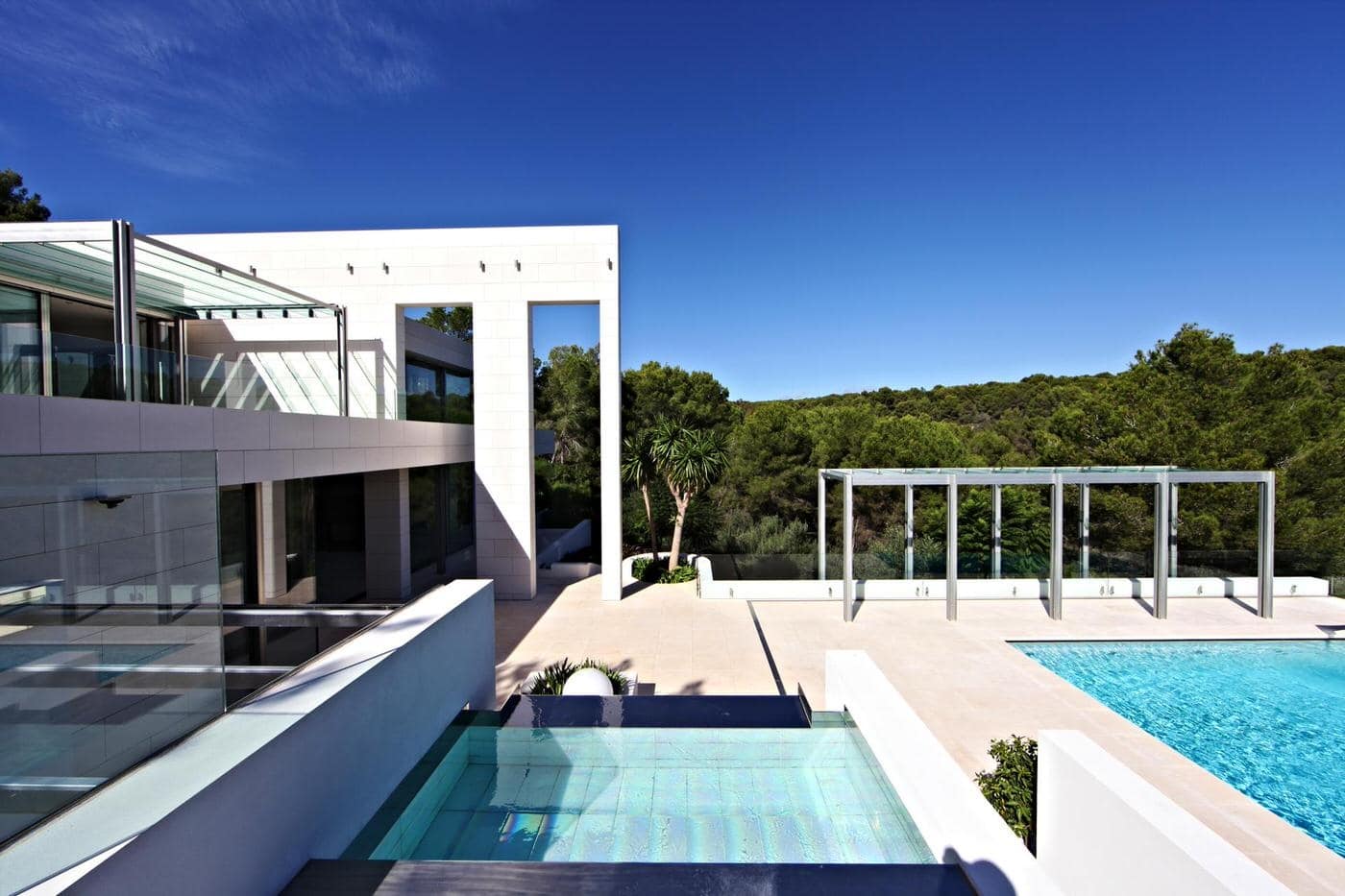 This ultramodern designer-villa has succeeded to unite maximal comfort, exclusivity and advanced technology of the extraordinaire. The innovative living object on Mallorca conforms with highest standards and was completely erected in ferro concrete. This property is at home in best position in Sol de Mallorca and is an example for contemporary architecture that connects a high light incidence with straight lines and open areas. Spacious designed rooms plus high ceilings support the unprecedented high life-standard of this Mallorquin designer-object.