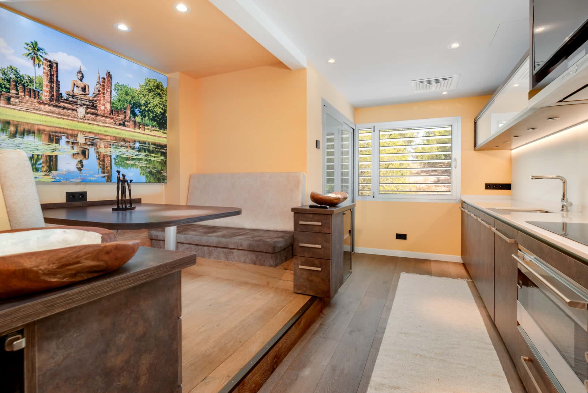 The highlight of the apartment is the large roof terrace with impressive views over the golf course and the surrounding countryside. A private outdoor shower and a fully equipped summer kitchen make it the perfect place for relaxing hours or sociable evenings.
