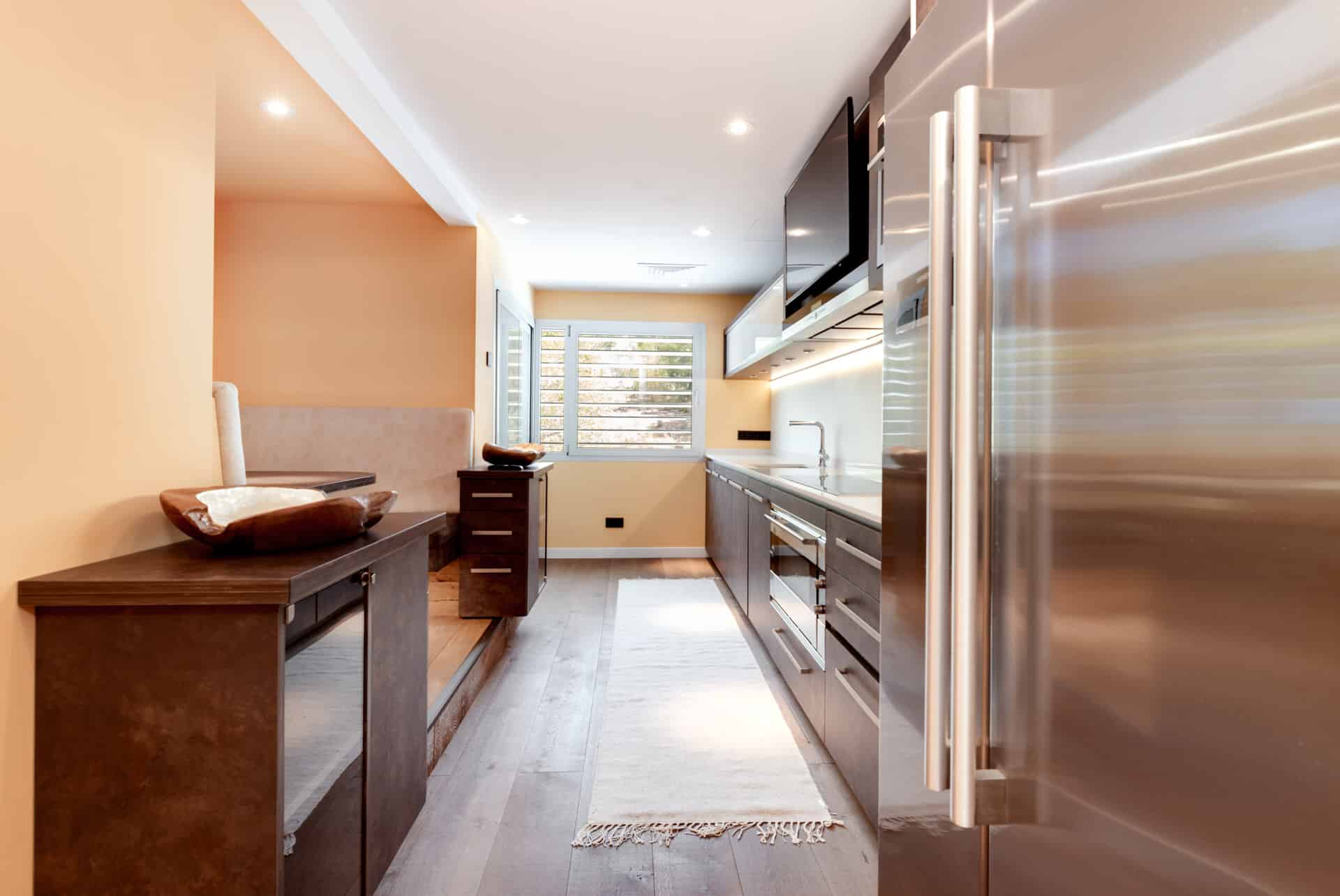 The open fitted kitchen with modern electrical appliances invites you to cook and enjoy. An integrated domotic system makes it easy to control the climate, lighting and blinds. Connectivity is provided by fiber optic internet, ADSL, satellite TV and a telephone connection.