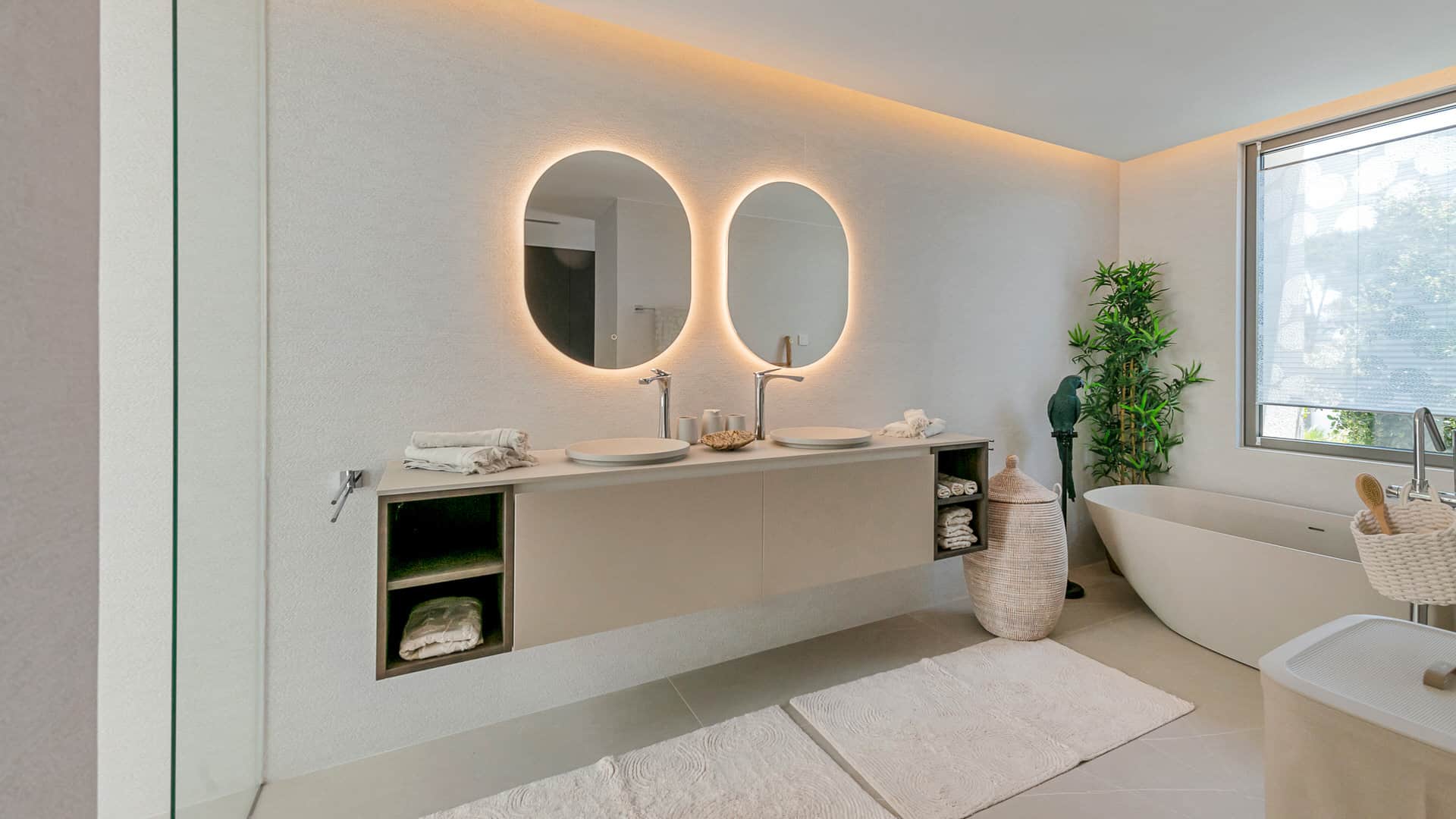 This beautiful property is rounded off by approx. 650 m² of outdoor space: a 20-meter XXL saltwater pool, an outdoor BBQ kitchen with roof, the Mediterranean garden and several covered and open terrace areas.