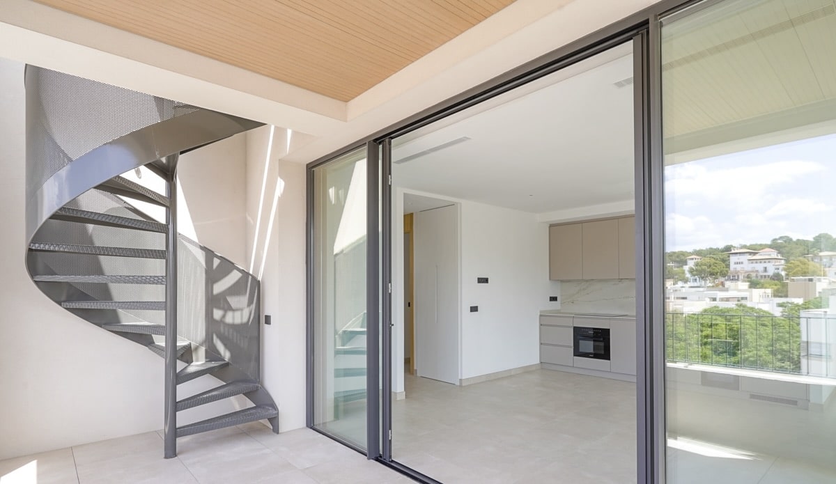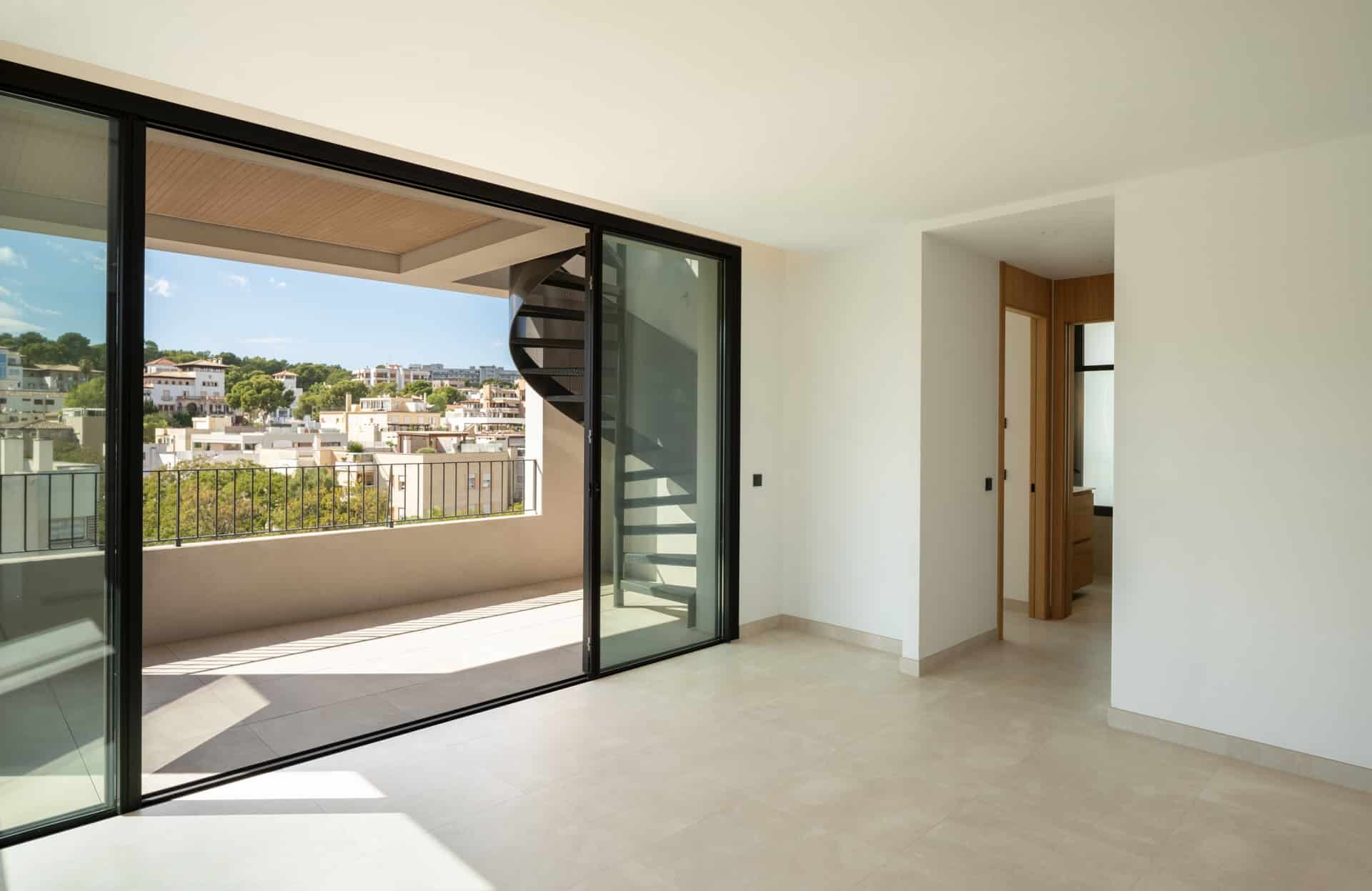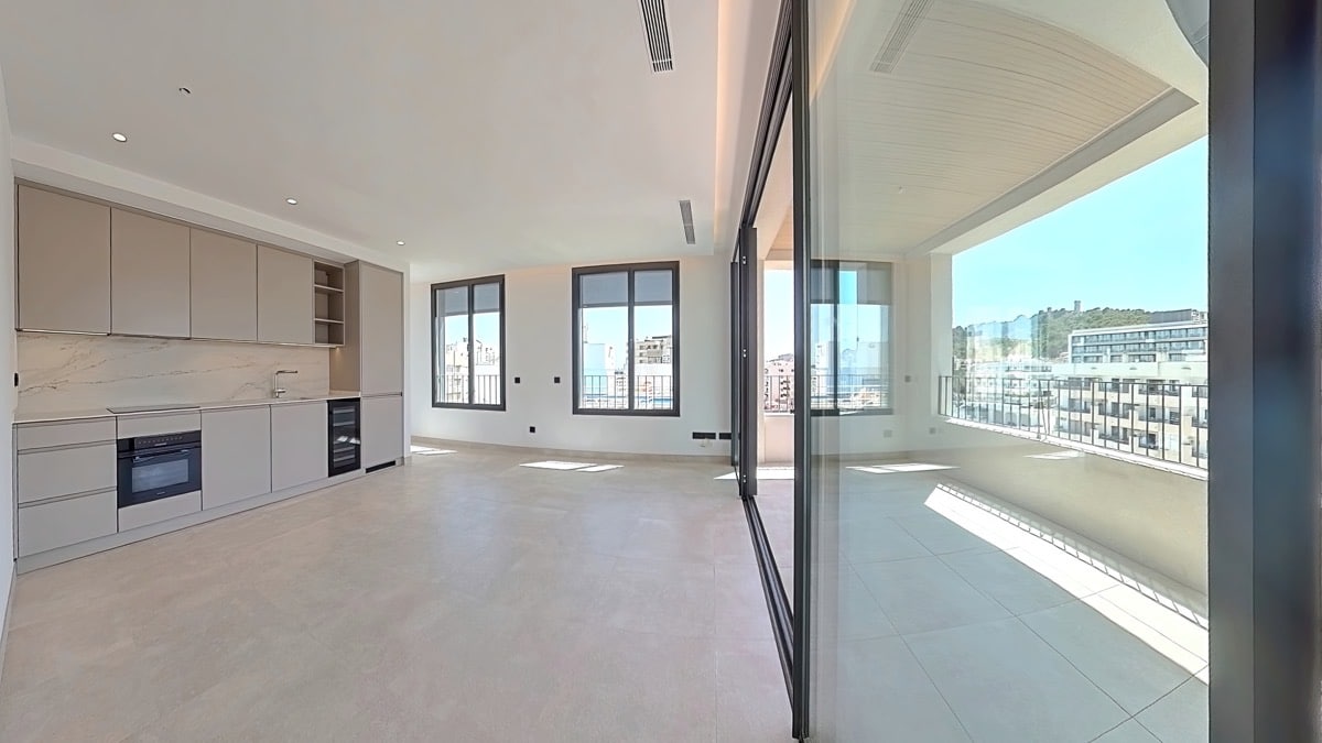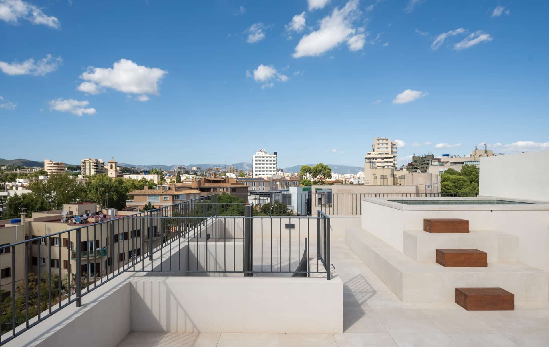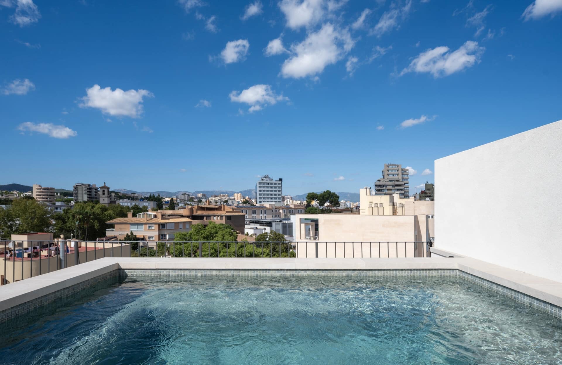 There is also a spacious master suite and a further double bedroom en suite. The huge 70 m² roof terrace has its own pool, a BBQ lounge area and wonderful panoramic views of Bellver Castle.