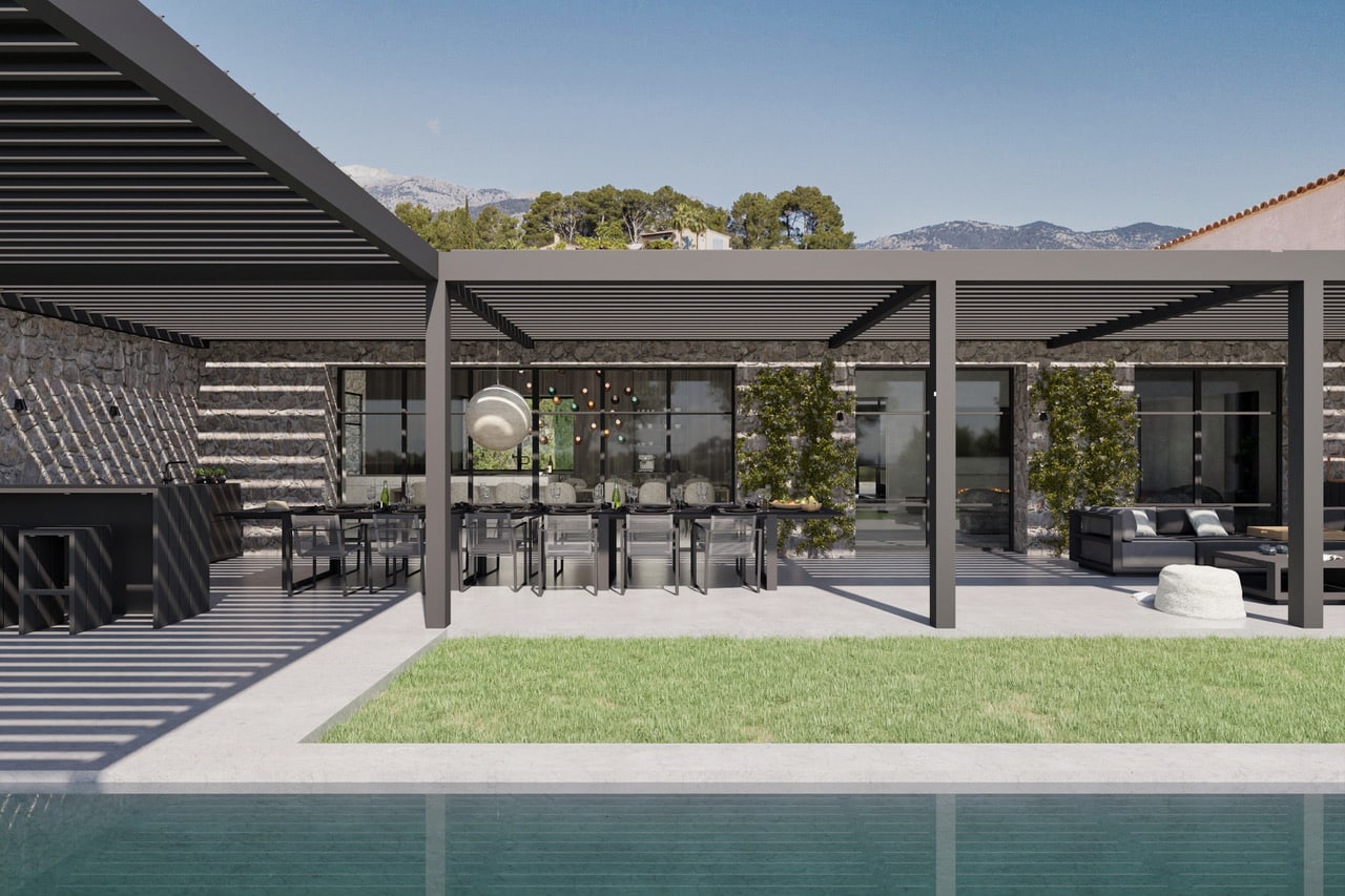 Lage: MOSCARI is located in the municipality of Selva in the central part of the island, at the foot of the Sierra de Tramuntana (World Heritage Site). This picturesque area comprises 5 villages: the eponymous town of Selva, Caimari, Biniamar and Binibona, each with its own charm and character. The beaches of Alcudia and Muro can be reached in around 20 minutes. The only golf course by the sea, Alcanada, is 25 minutes away and Pollença golf course can be reached in 20 minutes. The area offers the beautiful authentic Mallorca all year round without ever being overcrowded. MOSCARI is only 30 minutes by car from the center and airport of Palma.