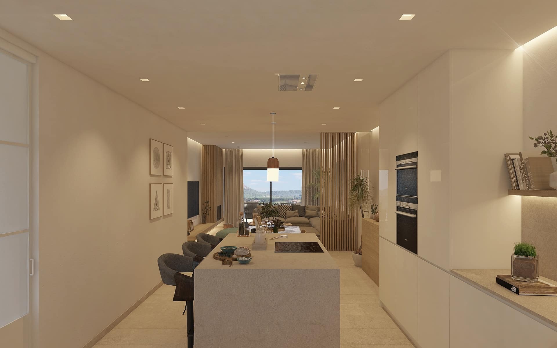 The apartment will offer a parking space in the underground garage. A communal pool is also included in the perfect residential community. The complex is located on a hill above the village of Santa Ponça and offers magnificent panoramic views of the mountains and the sea. The property will have a living and dining room with an open kitchen, four bedrooms, three bathrooms, a utility room and a south-east facing terrace. The underground parking space is included in the sale price and rounds off this great offer.