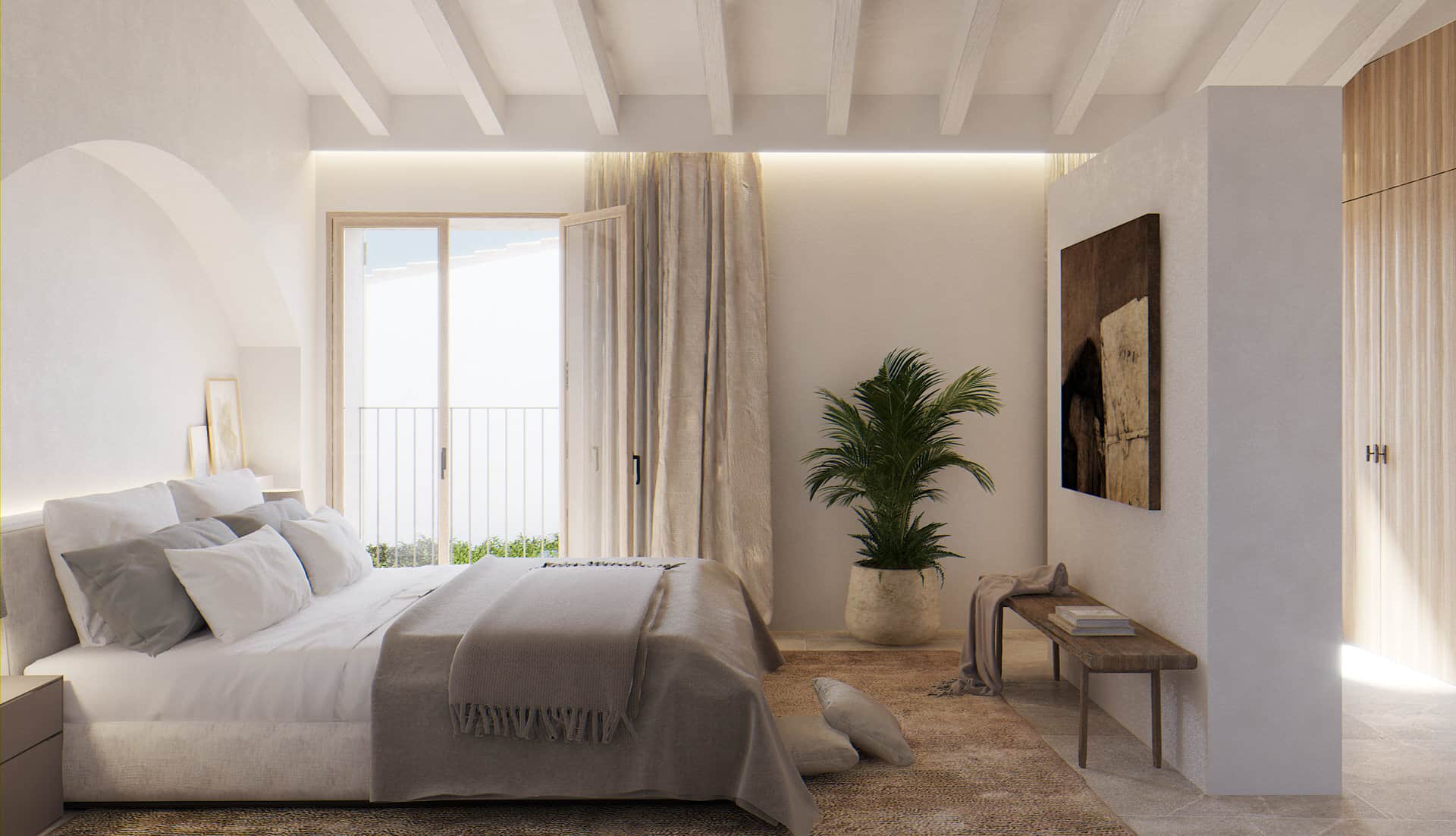 The natural materials underline the Mallorcan character of the house.