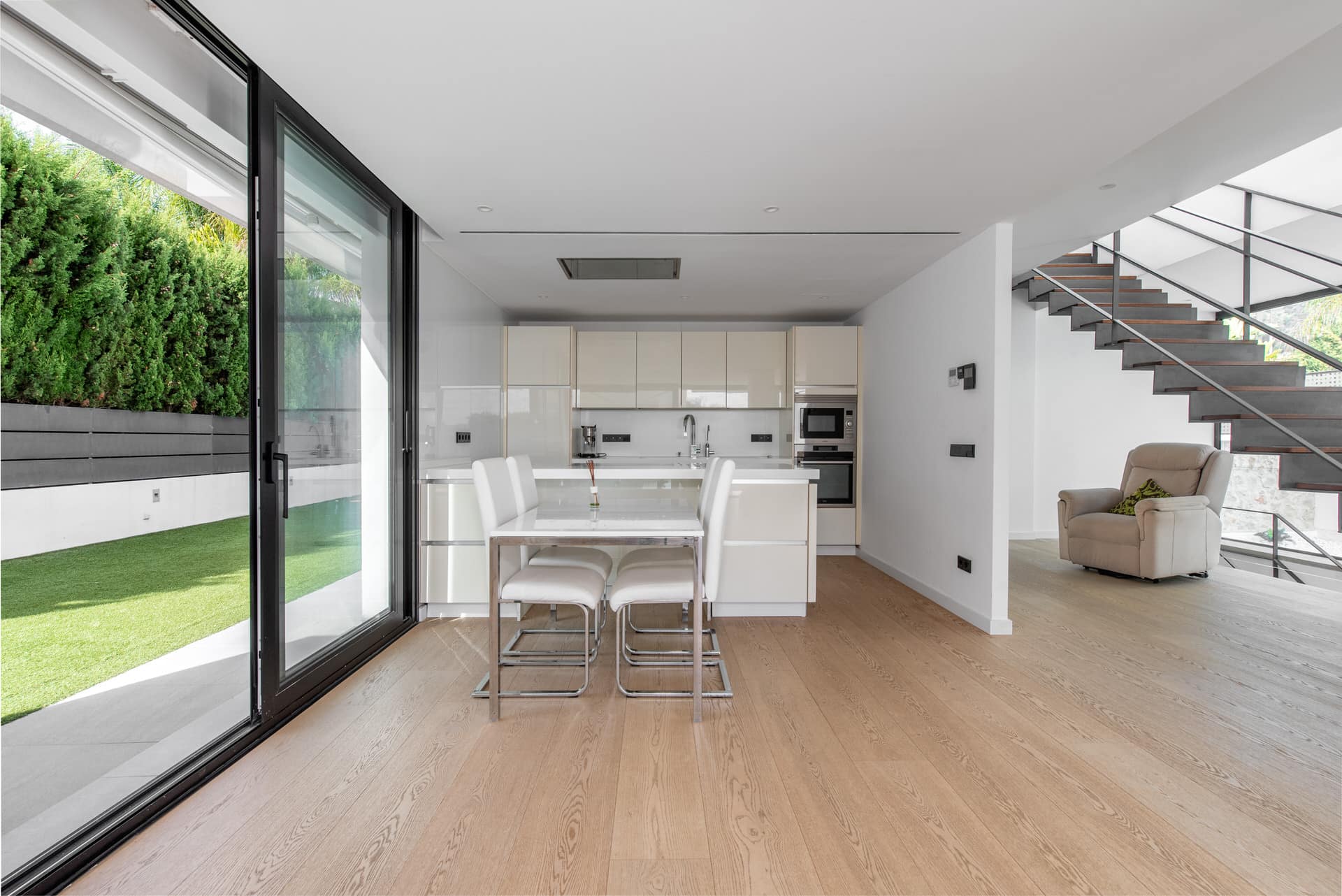 Inside, the spaces have been conceived to offer maximum comfort. The house has four large double bedrooms with underfloor heating and four avant-garde style bathrooms, where high-end finishes make the difference. An office, which can easily be converted into a fifth bedroom, adds versatility for working from home or entertaining guests.