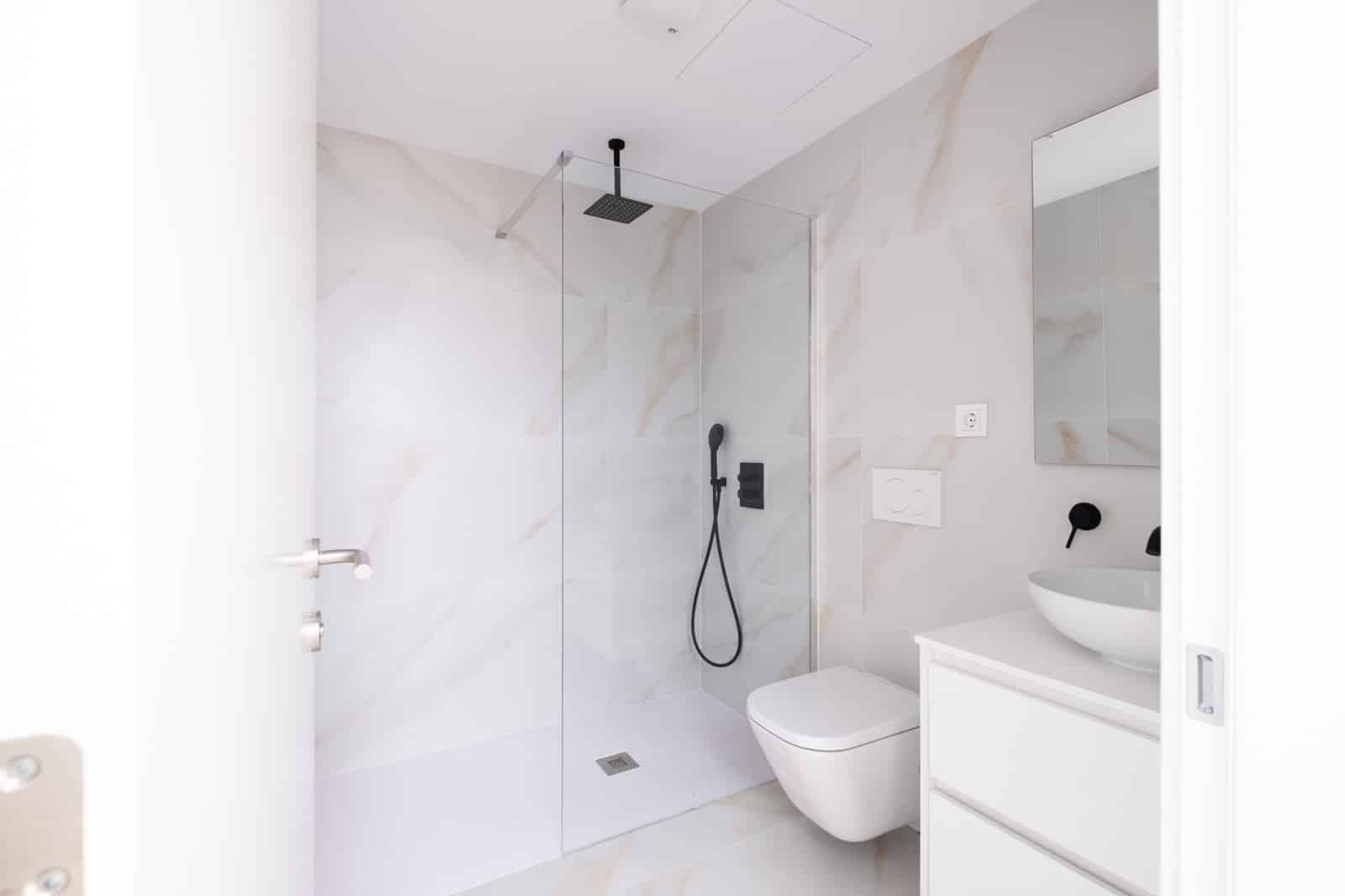 The kitchen can be planned individually - the planned budget is 20,000 e net for furniture and appliances. Two elegantly appointed bathrooms with floor-level showers, high-quality fittings and wall-mounted