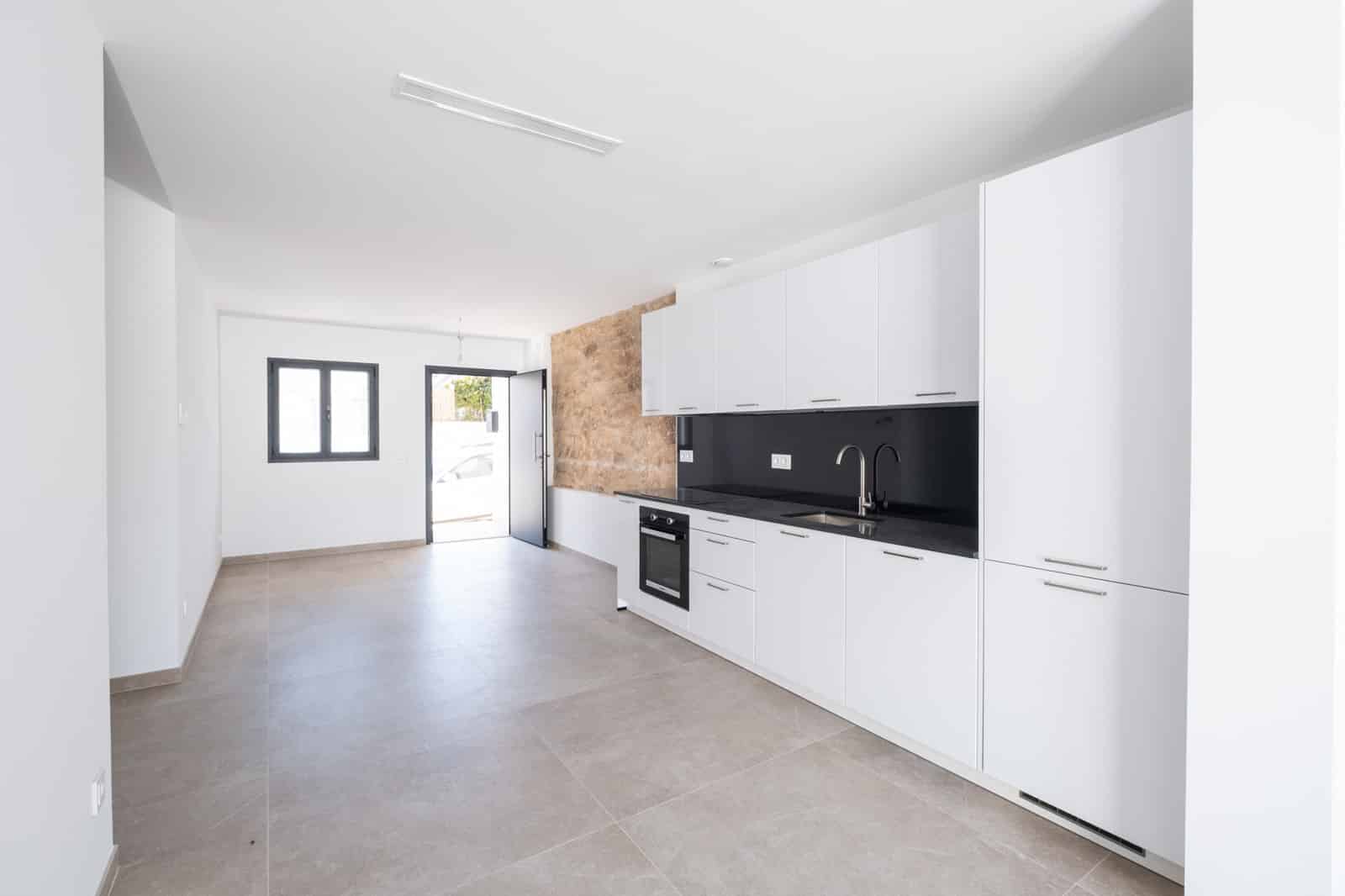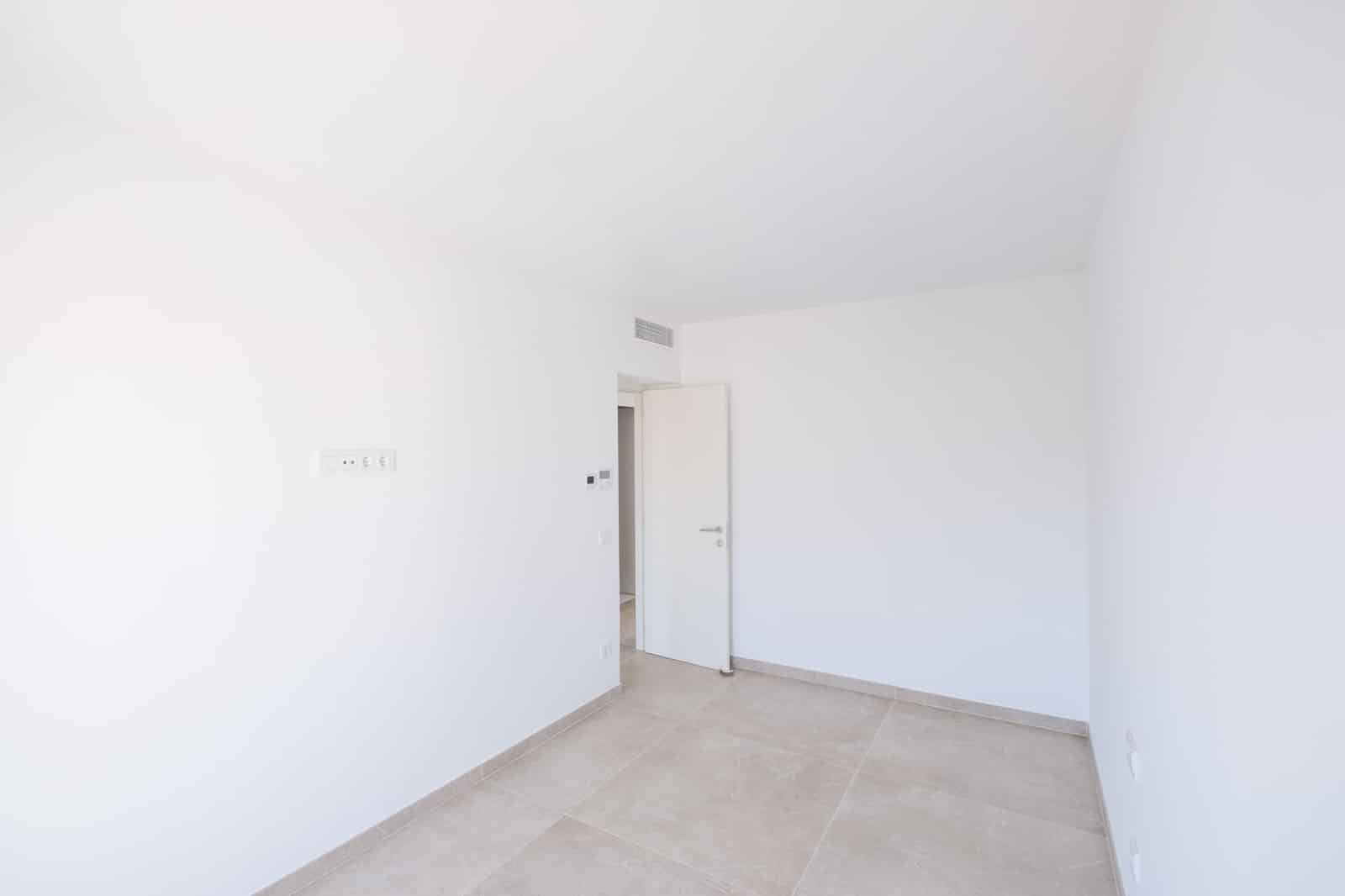 Large-format natural stone tiles, aluminum windows with Mallorcan shutters, an energy-efficient aerothermal system, underfloor heating and air conditioning units ensure a pleasant living environment all year round. A modern range of switches, network connections and a video intercom