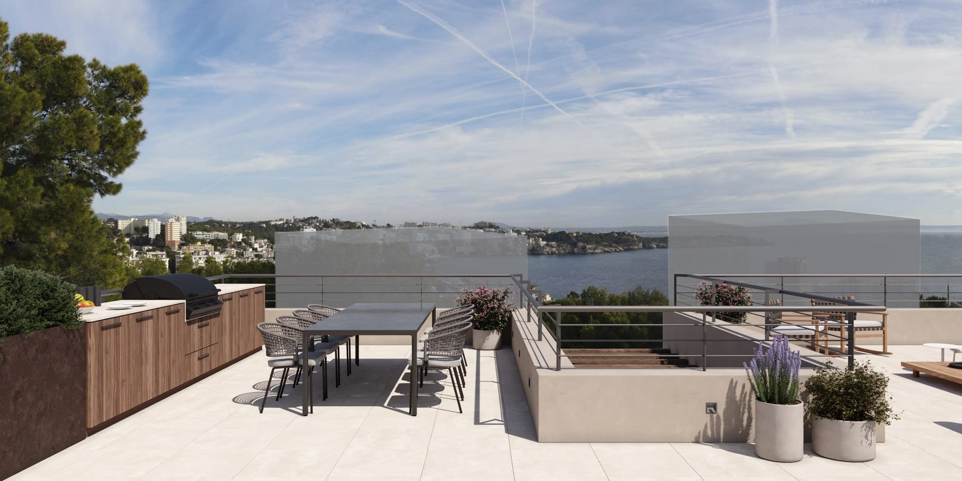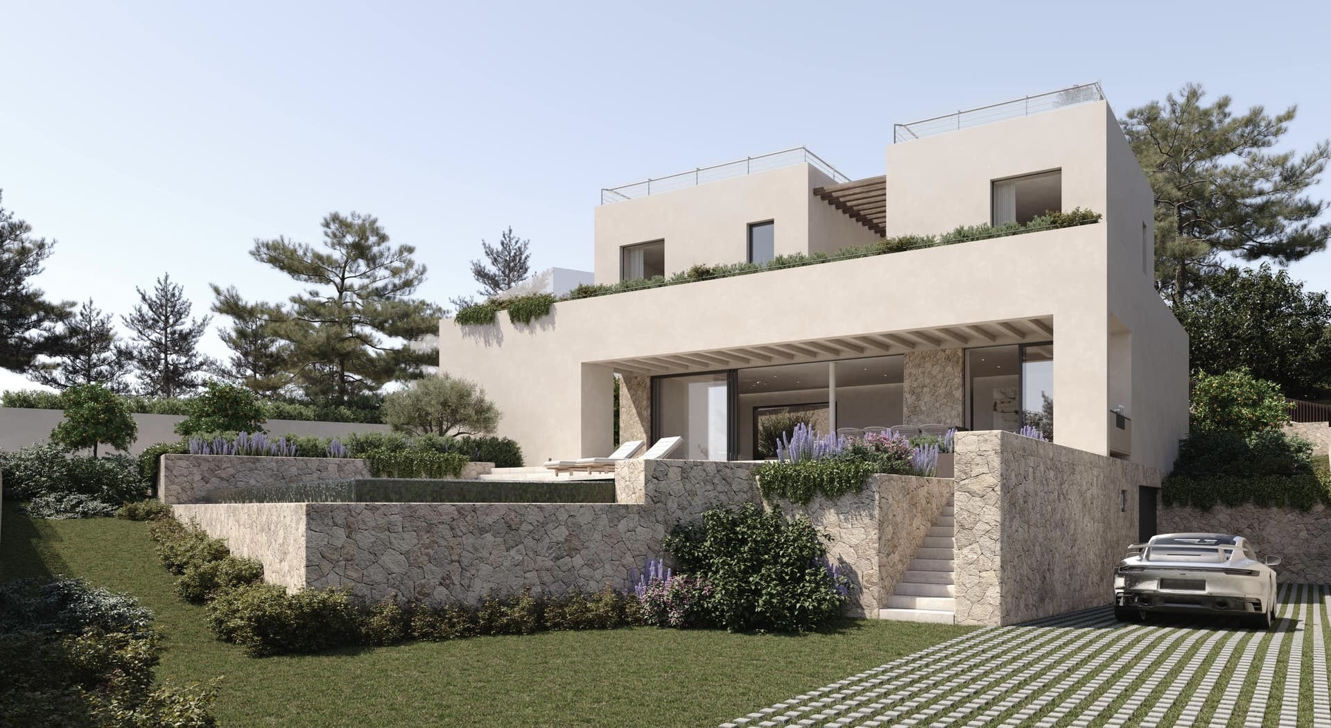 This project in Cas Catala for a turnkey designer villa is being built on an attractive plot, adjacent to a green zone and offers wonderful panoramic views as far as the sea.