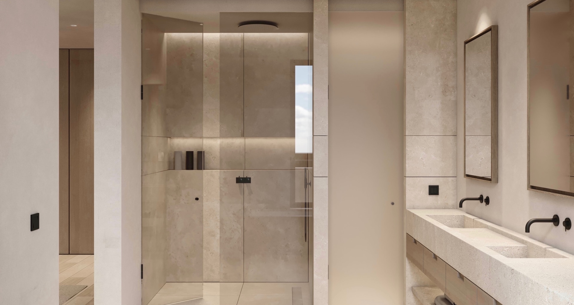 On the upper floor of the villa there will be 3 further bedrooms with en suite bathrooms. In the basement there will be a garage with space for 2 vehicles, a fitness room with sauna, a WC, the wine cellar, a servants’ room and plenty of storage space.