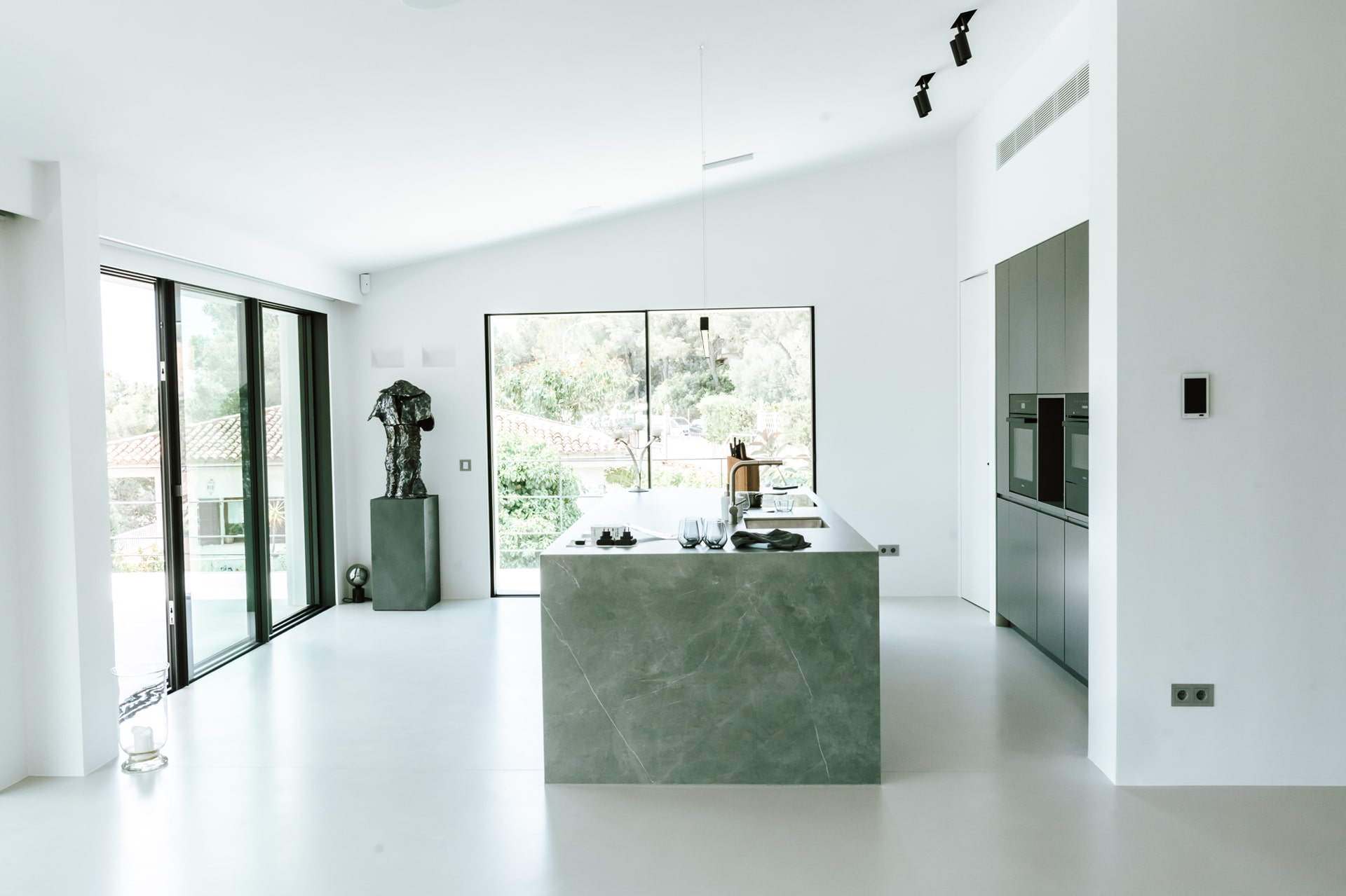 Ausstattung: Underfloor heating, fireplace, air conditioning, solar system, 84 m² infinity pool, elevated location thereby fantastic views over the valley to the sea, separate accessible guest apartment, garage for 2 vehicles, domotics, modern technologies & lighting, outdoor kitchen with barbecue area & TV, micro-cement and stone floors and much more.