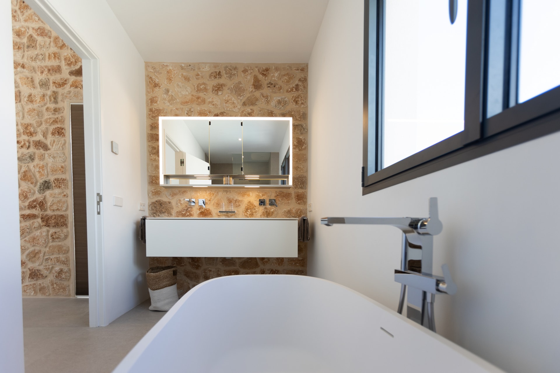 This modern villa is located in Son Moja, very close to Cala Santanyí and offers both sea and mountain views.