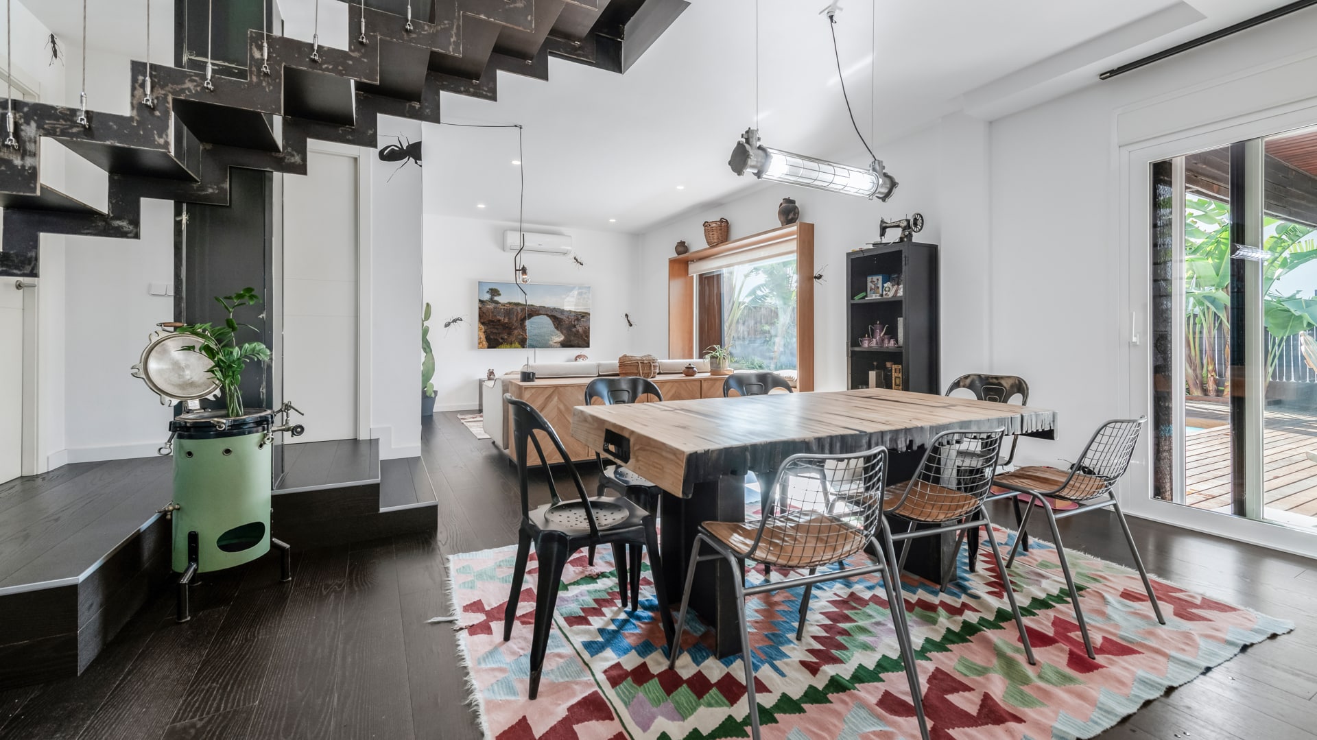 The house is equipped with modern appliances integrated in a rustic-industrial environment, combining functionality and aesthetics. Each element has been selected or created with dedication, making this home a unique, authentic space with a soul of its own.