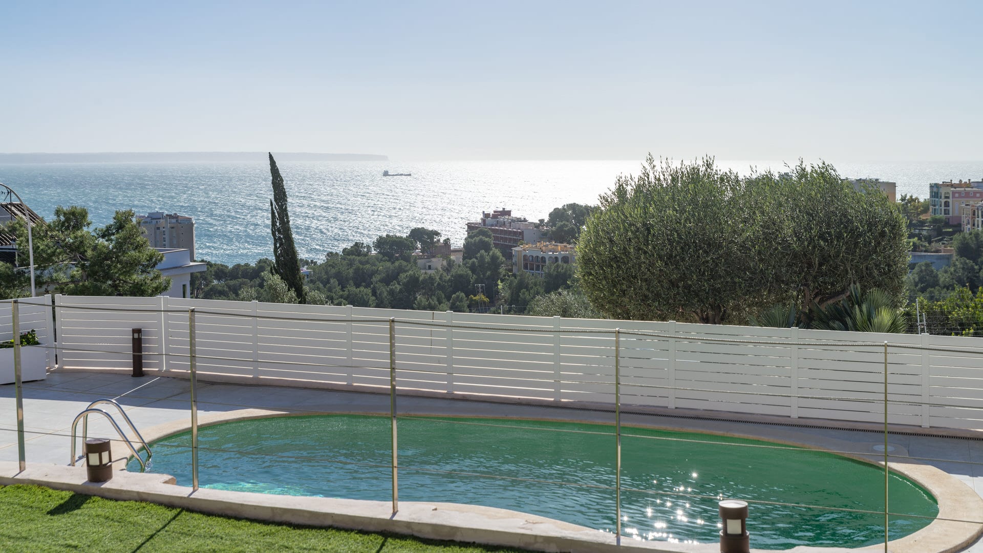 Situated in the quiet and exclusive area of Cas Català, this elegant family villa offers sea views from all floors and great potential. The property extends over three levels, which are connected by stairs and elevator, and combines comfort with Mediterranean style.