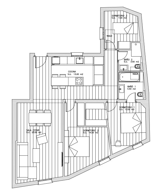 Ausstattung: Suelos de madera, calefacción central de gas (radiadores de diseño), cocina de diseño italiano DOIMO con electrodomésticos Bosch, techos y paredes del apartamento con aislamiento térmico y acústico, sistema de iluminación FLOS de alta calidad, terraza comunitaria en el tejado.
