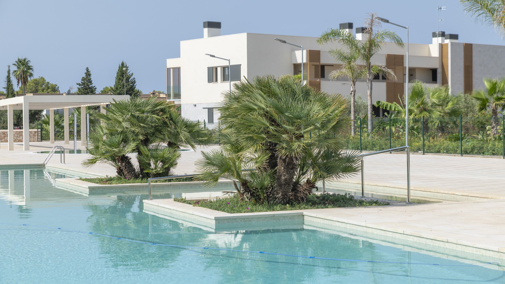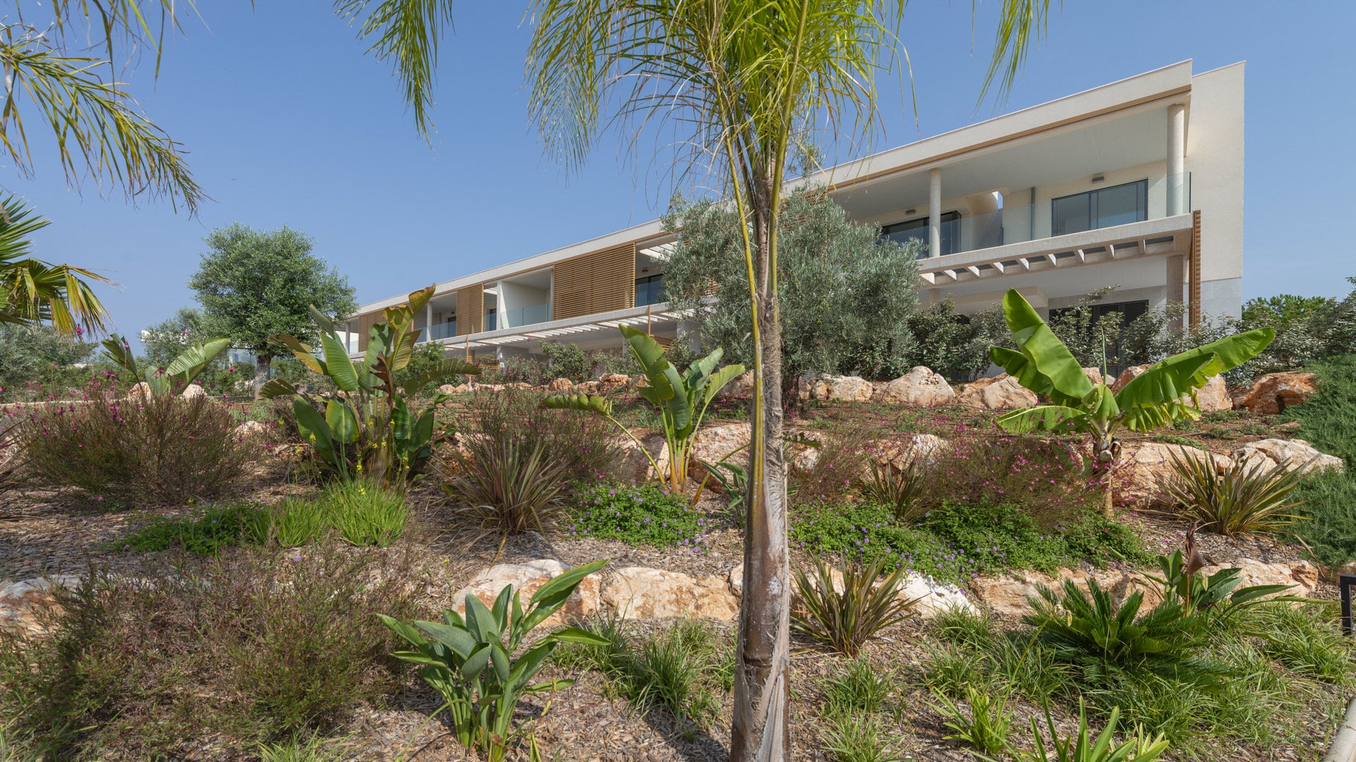 Este exclusivo complejo está situado cerca de la reserva natural y playa de ensueño «Es Trenc» y cuenta con un fantástico paisaje de piscinas como nunca antes ha visto.