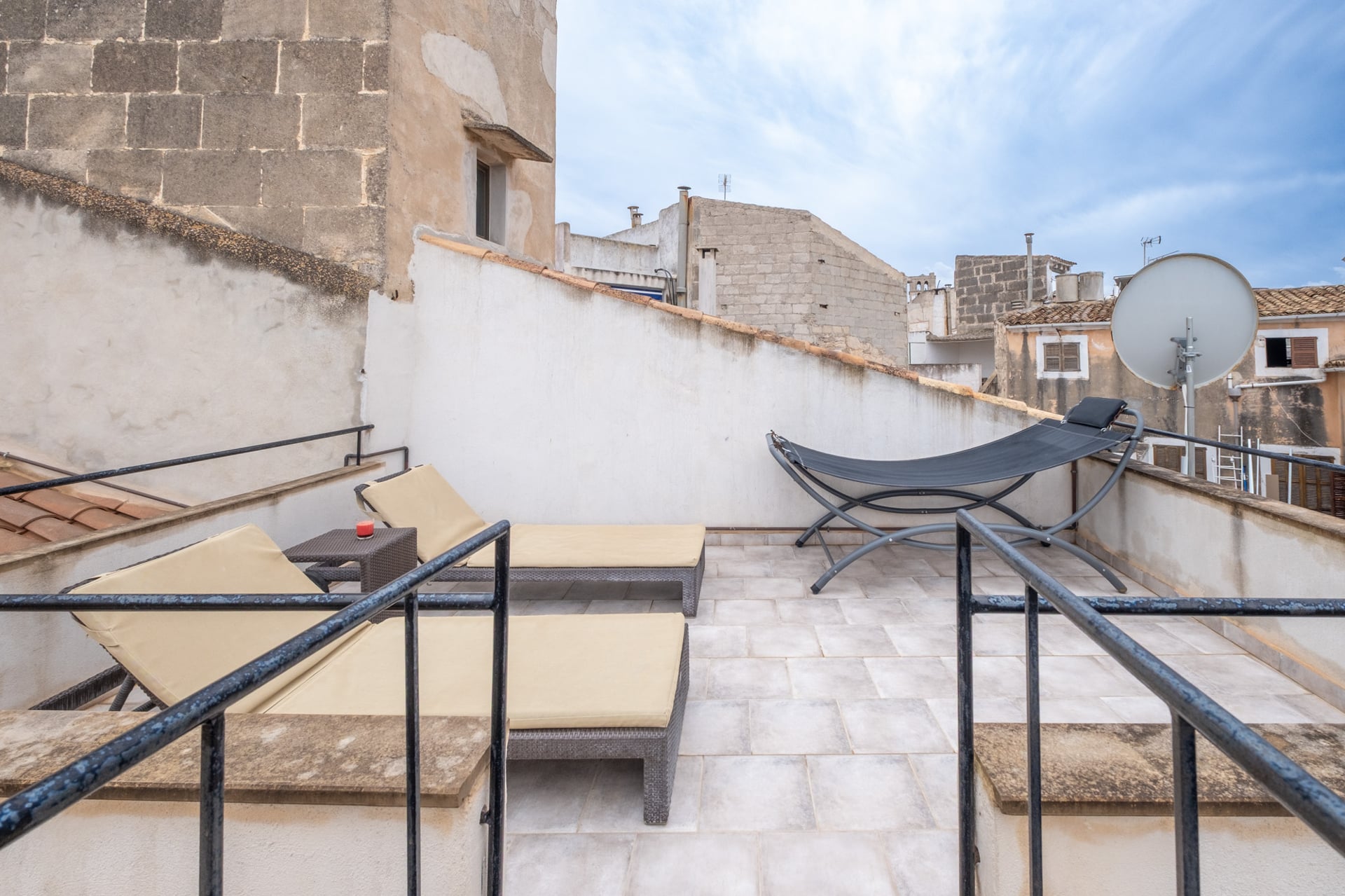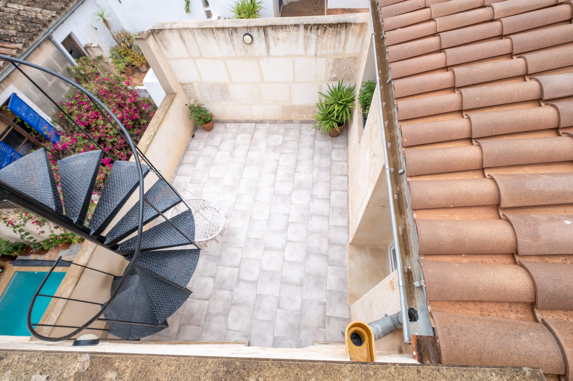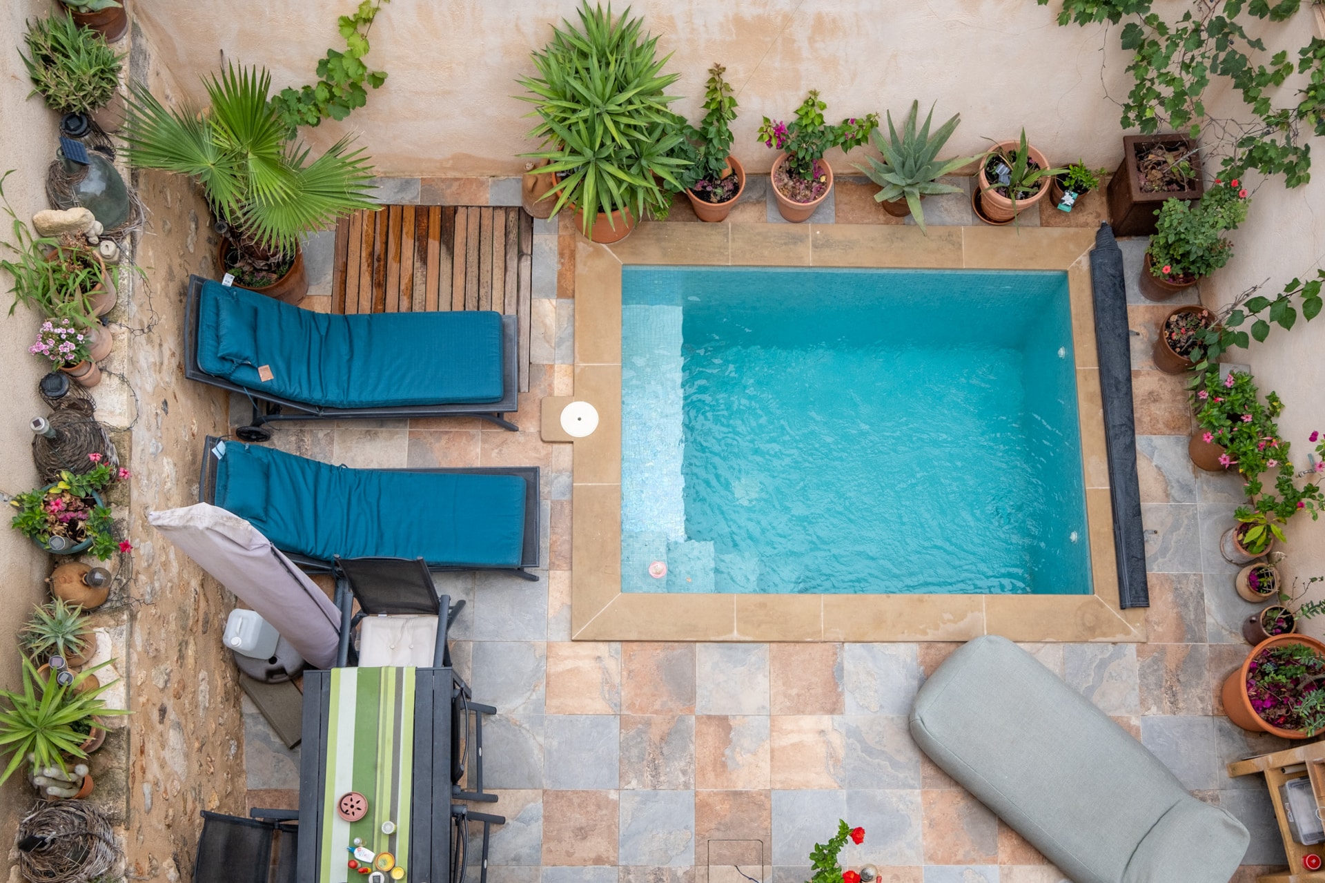 Tres encantadoras terrazas, incluyendo una exclusiva azotea, invitan a pasar horas de relax bajo el sol mallorquín. El pequeño jardín, cuidadosamente ajardinado, y la refrescante piscina crean su propio oasis privado, ideal para los acogedores días de verano o las veladas sociables.