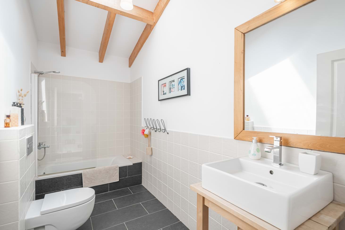 La zona exterior tampoco deja nada que desear: Dos terrazas cubiertas, una amplia cubierta de madera con zona de estar y una zona de piscina independiente con WC invitan a relajarse y disfrutar. Desde aquí, la vista se extiende a través de los cuidados jardines hasta las montañas, un telón de fondo que ofrece momentos inolvidables, especialmente al atardecer.