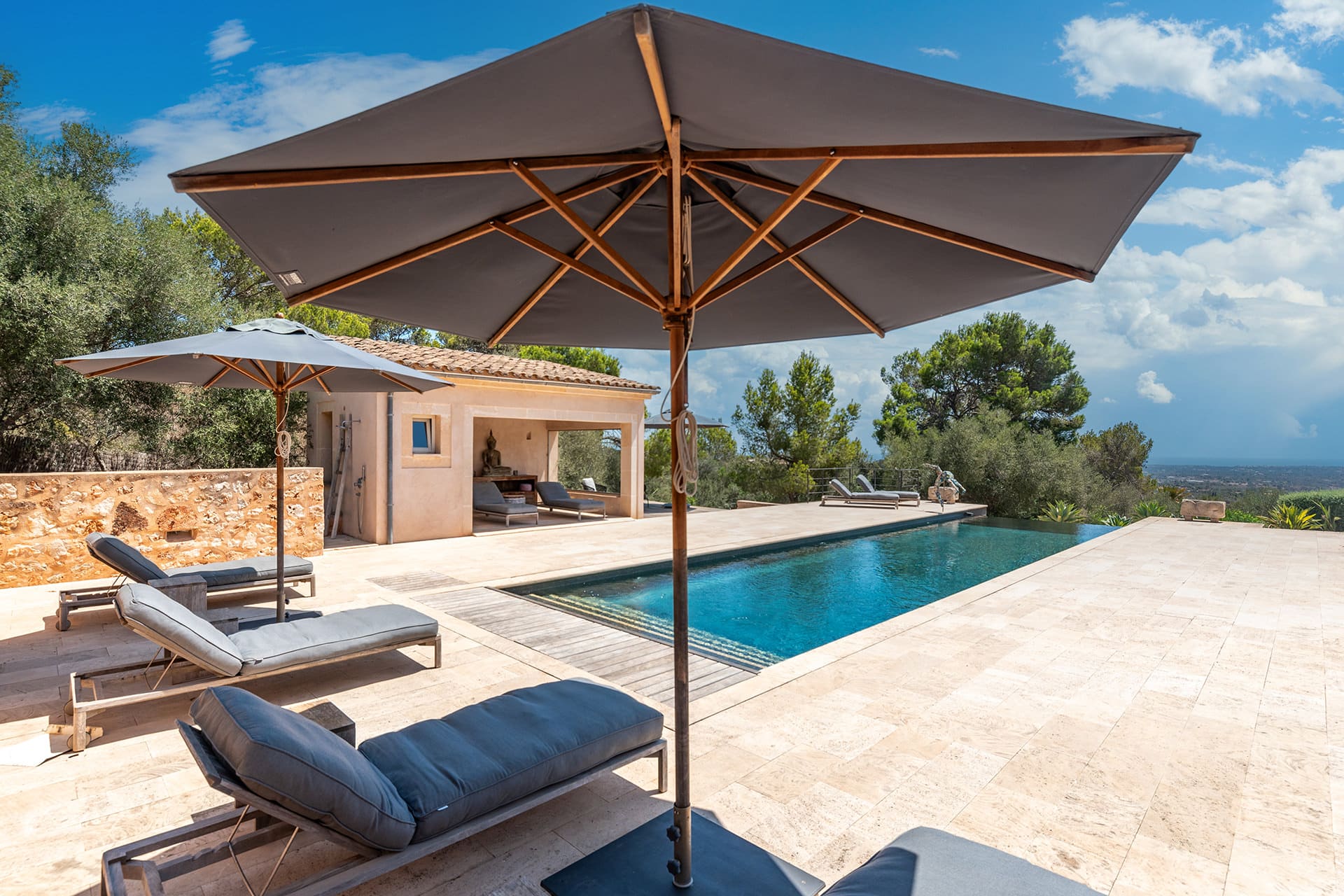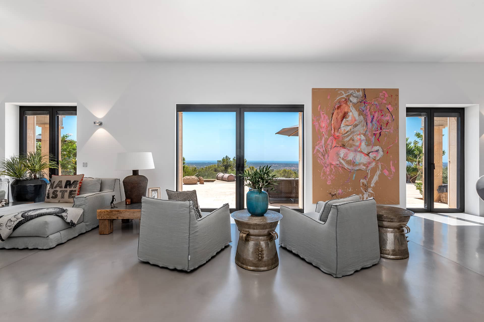 Esta finca de Santanyí está situada en lo alto de una colina y ofrece unas vistas panorámicas incomparables de la belleza de la isla.