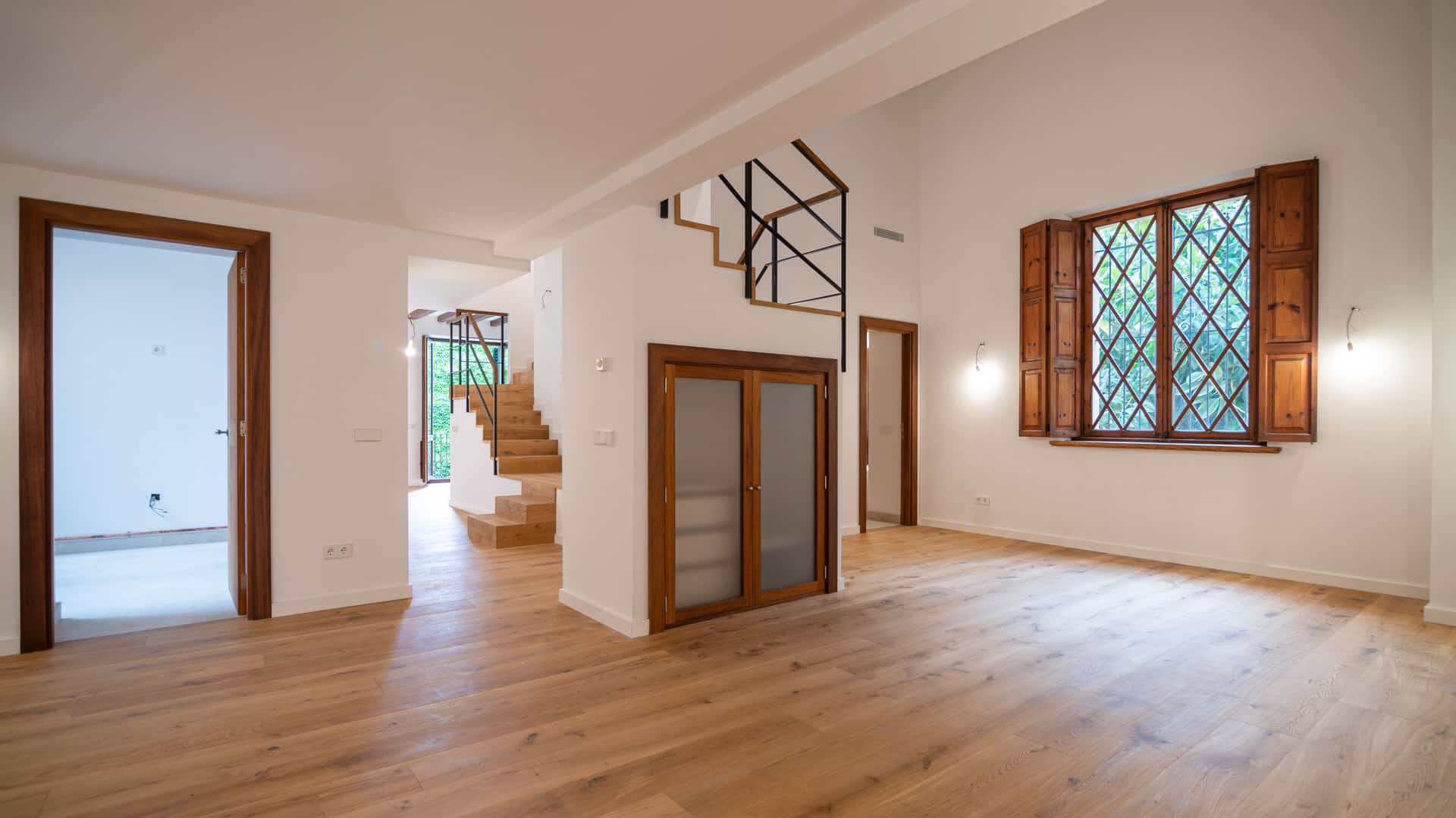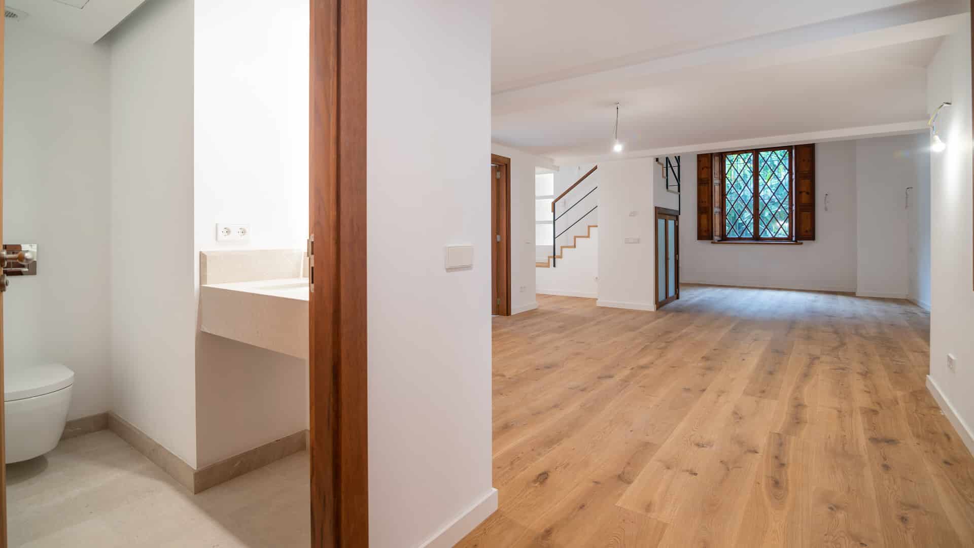 Todo el apartamento de Palma ha sido renovado con materiales de alta calidad, por lo que los baños están equipados con productos Duravit y Hans Grohe. Todas las piezas originales han sido restauradas y utilizadas en la medida de lo posible. Esto asegura que el carácter del viejo edificio se preserve. El edificio tiene un ascensor, un bonito patio y un aparcamiento subterráneo. Una plaza de aparcamiento está incluida en el precio de compra.