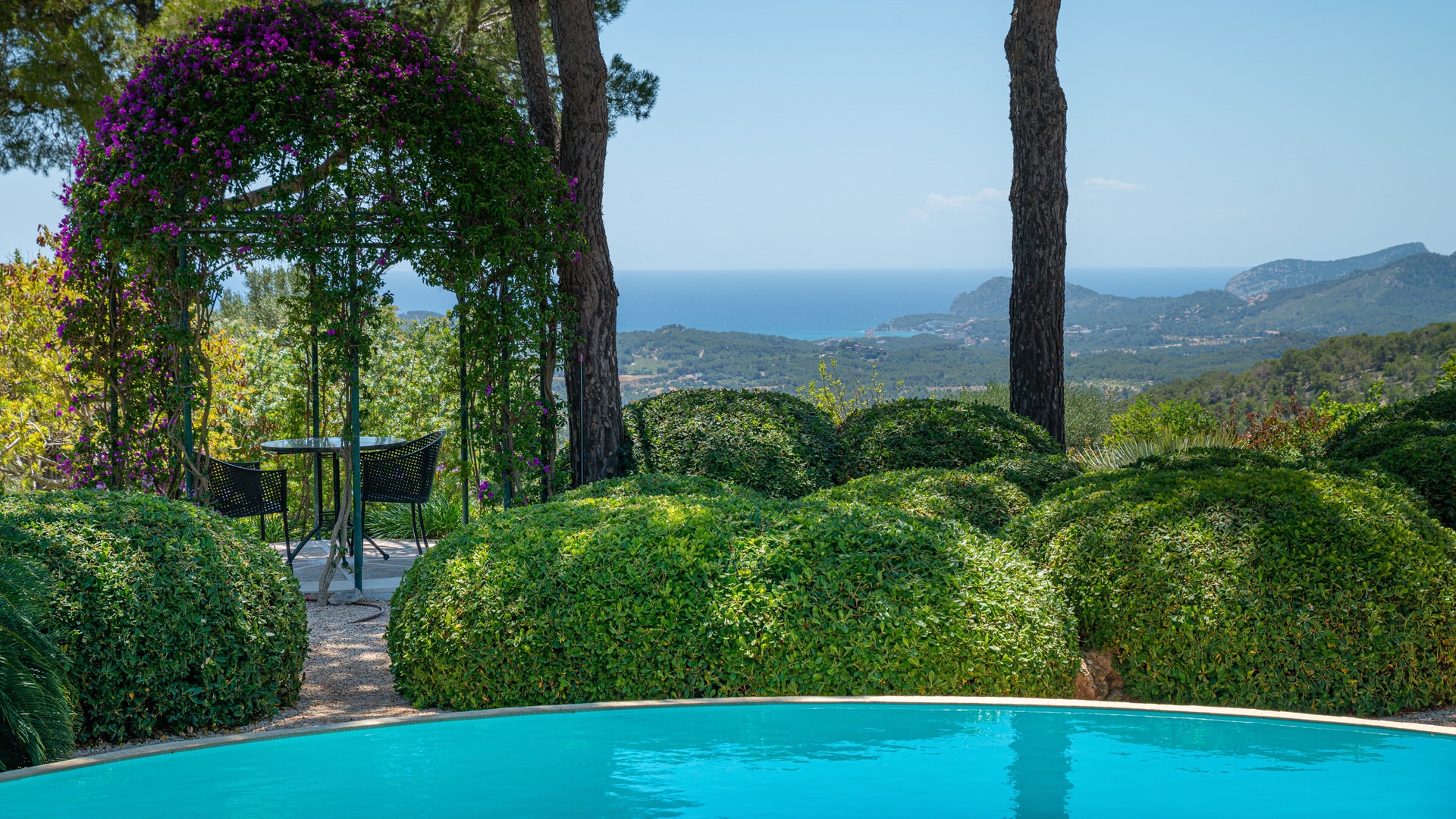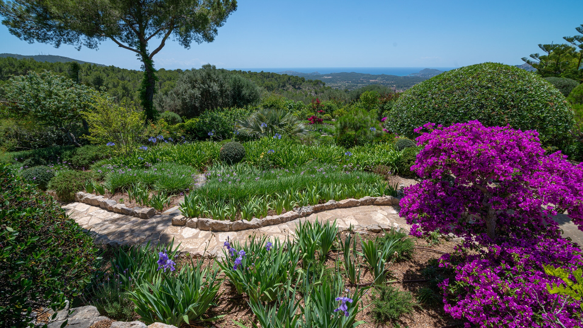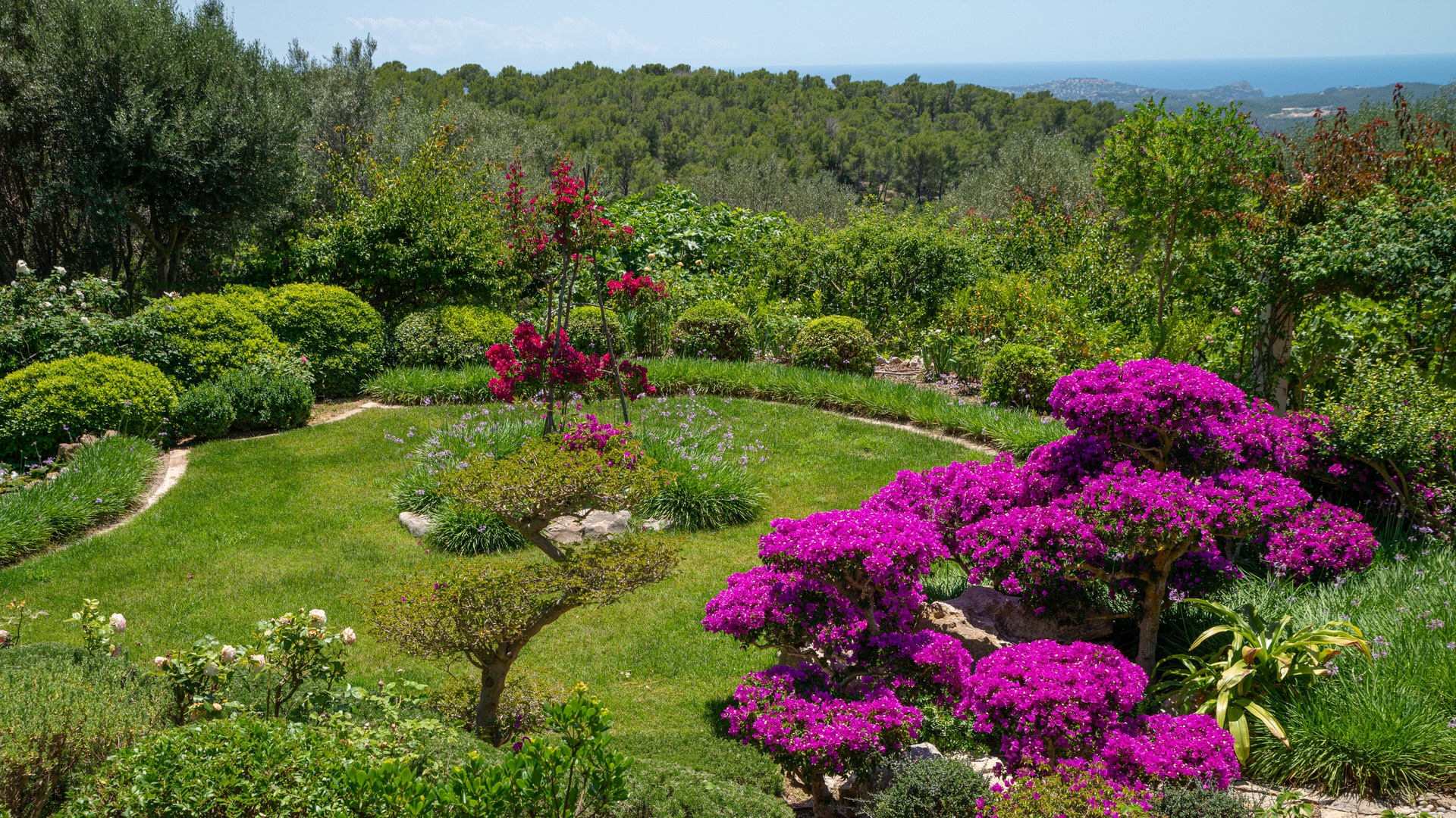 Lo más destacado de esta propiedad de Mallorca es el impresionante jardín de estilo japonés con plantas exóticas, un pabellón con buganvillas bonsai, árboles frutales, magnolias, jacarandas, paredes de bambú, rosas y mucho más.
