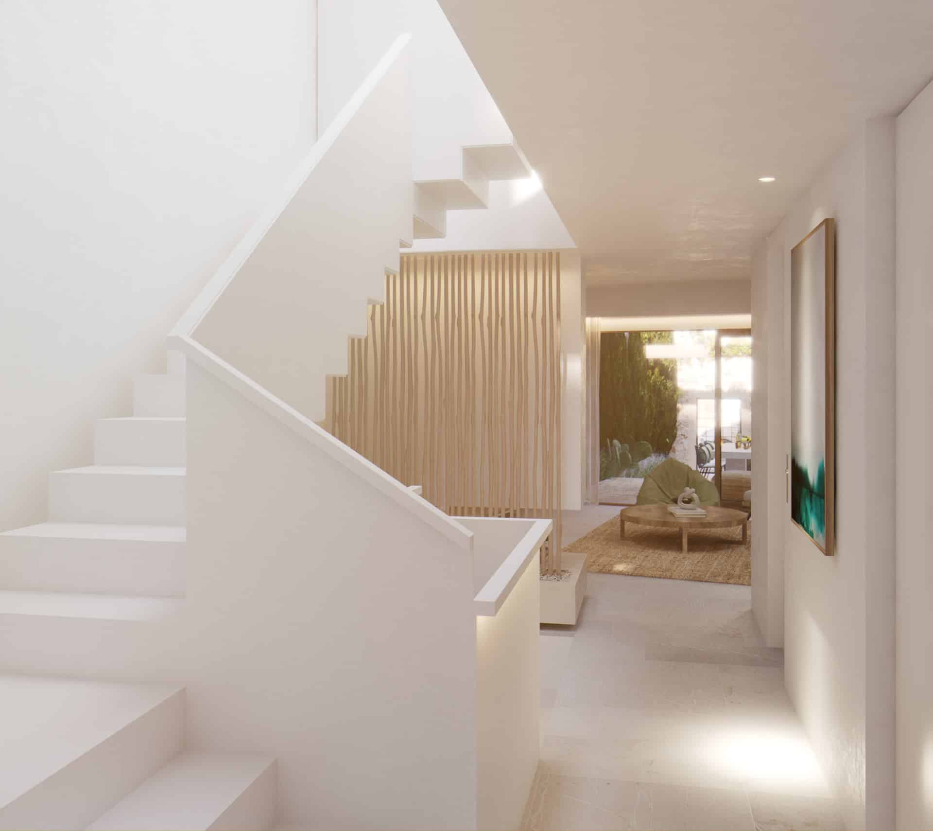 La planta baja, como zona de estar central, está diseñada como un refugio - aquí encontrará la cocina abierta, el luminoso comedor, un aseo de invitados y el salón, que se abre al jardín a través de grandes puertas, creando una transición fluida entre el espacio interior y exterior, rodeado de una plantación armoniosa que crea privacidad y un ambiente mediterráneo.