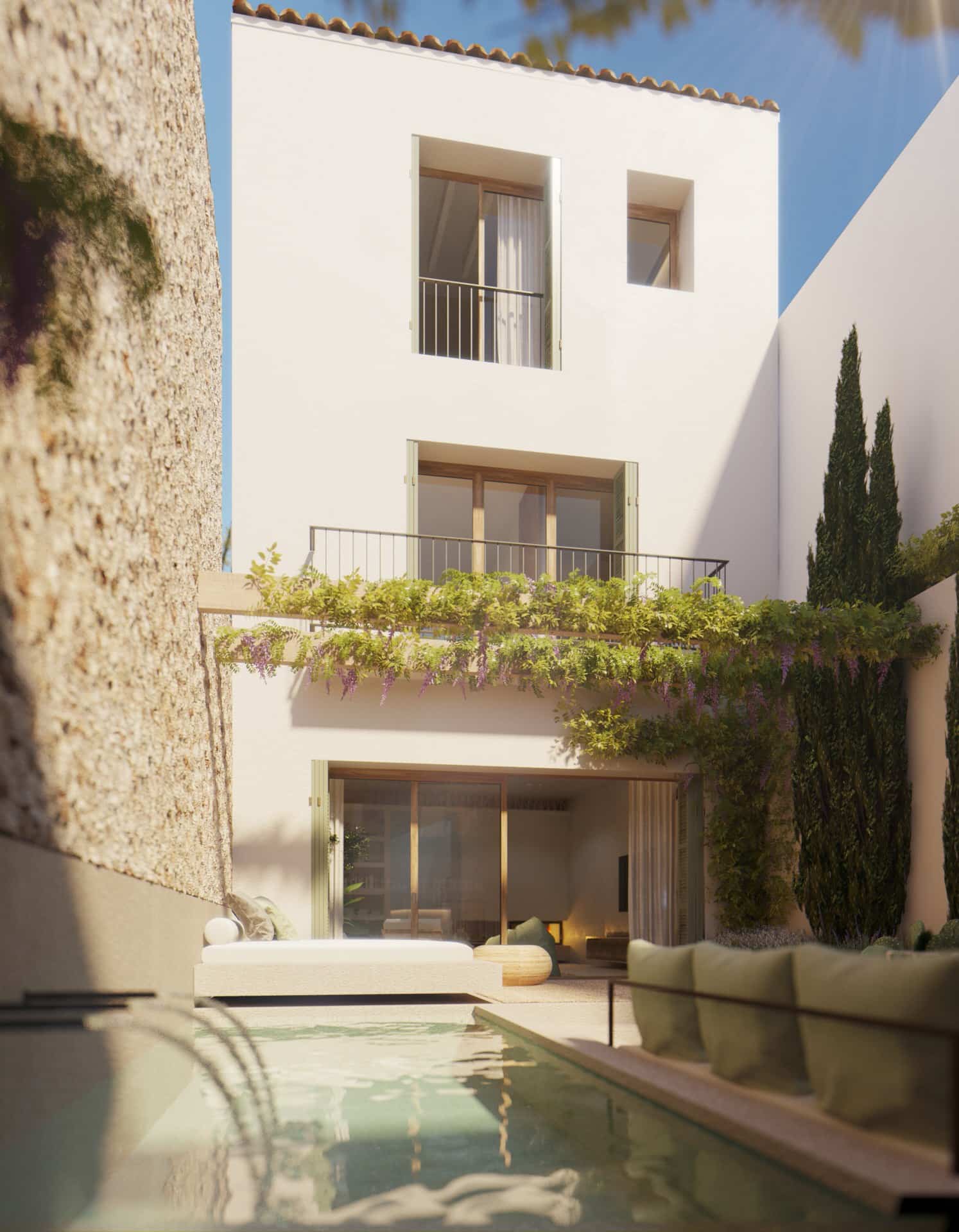 En una de las ubicaciones más codiciadas de Arta, en pleno centro, se encuentra actualmente en construcción esta casa adosada cuidadosamente reformada con carácter mallorquín y líneas claras y contemporáneas.