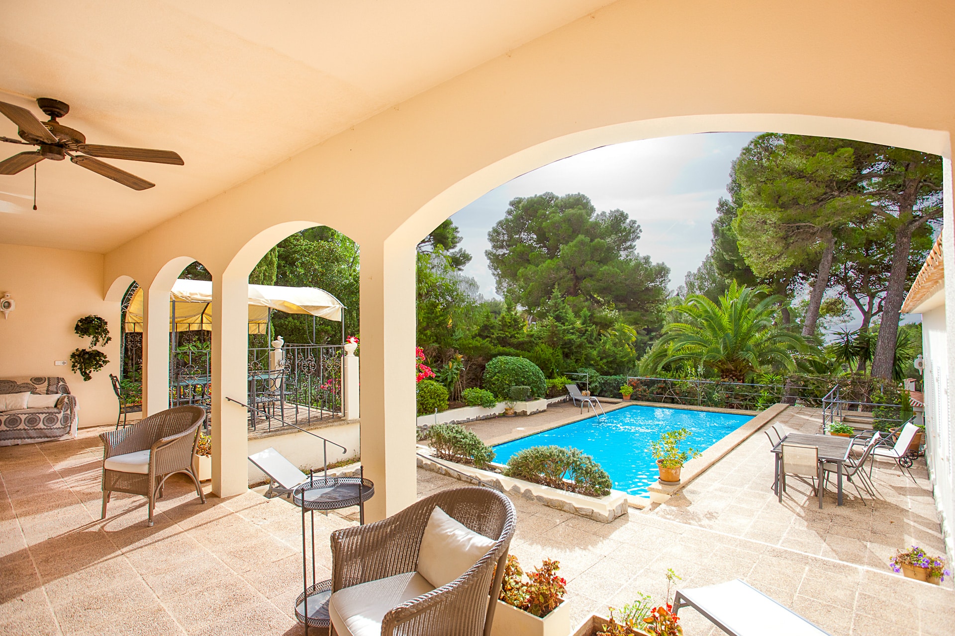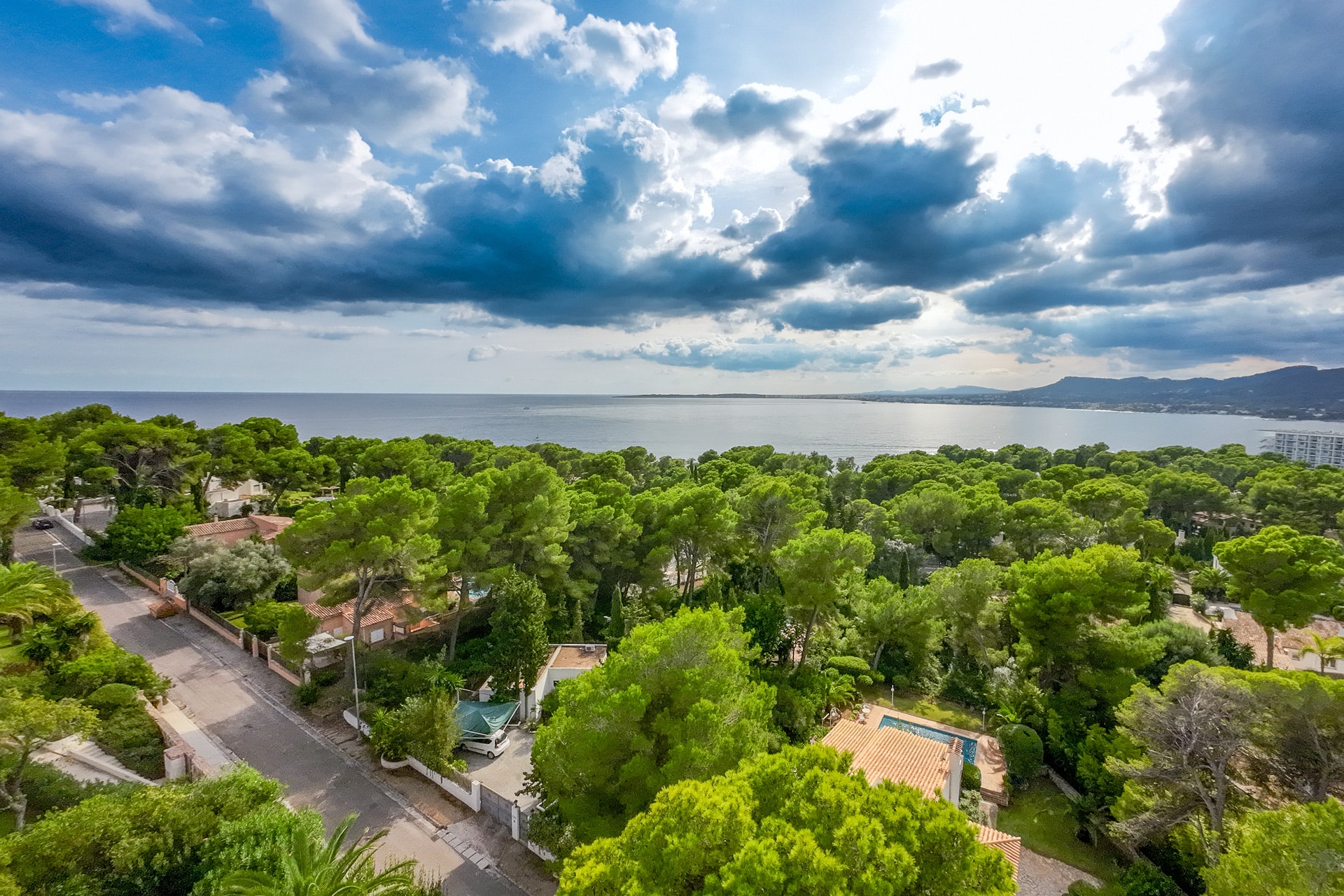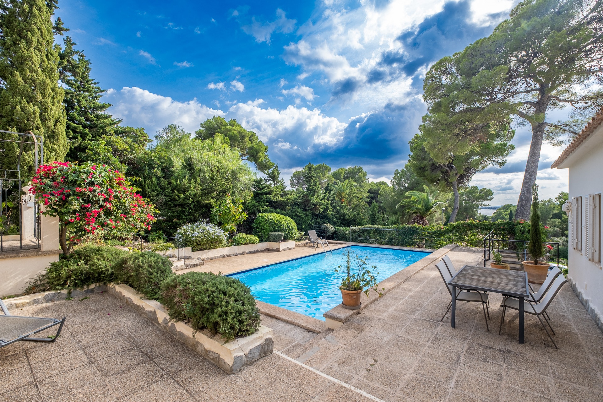 Gracias a su posición elevada, buena arquitectura y árboles maduros, esta casa disfruta de vistas parciales al mar y mucha privacidad.