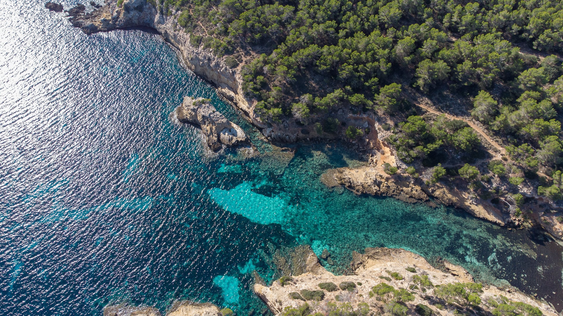 El tranquilo pueblo de Cala Vinyas tiene una playa hermosa y tranquila con palmeras tropicales. La playa es de arena muy fina y te sientes un poco como en el Caribe. Con una longitud de 60 m y una anchura de 8 m, la playa no es tan grande como en otros lugares de Mallorca, pero el hermoso entorno compensa el tamaño de la playa. Como Cala Vinyes es un lugar de vacaciones muy pequeño, la playa no está saturada de turistas. Además, la playa tiene una pendiente muy plana hacia el mar, por lo que también es muy adecuada para los niños y ofrece un parque infantil justo detrás.