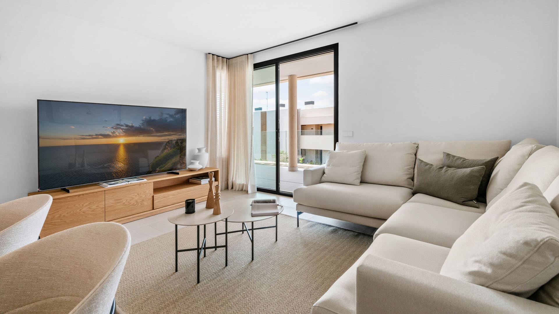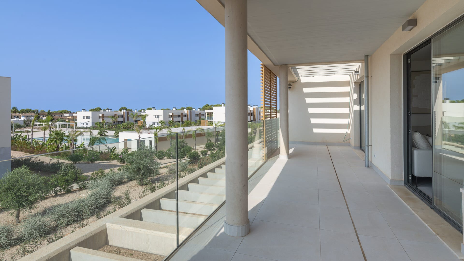 Der Komplex in Sa Ràpita verfügt über Erdgeschoss-Apartments mit eigenen Gärten ebenso wie Penthäuser mit eigenen Dachterrassen und Meerblick. Die Immobilien verteilen sich über eine Wohnfläche zwischen ca. 94 m² bis ca. 115 m² und haben zwei oder drei Schlafzimmer mit zwei Badezimmern. Eines dieser Badezimmer ist en-suite. Alle Einheiten sind mit einer Terrasse ausgestattet und die Penthäuser verfügen über eine Dachterrasse, welche eine Fläche von ca. 70 m² oder ca. 115 m² haben sowie einen Meerblick von der Dachterrasse aus. Jedes Apartment hat eine voll ausgestattete Küche, einen eigenen Parkplatz sowie einen Abstellraum. Das High Light dieser Anlage ist die gigantische Pool-Landschaft, welche von einem traumhaft mediterranen Garten umgeben ist und zahlreiche teilweise überdachte Terrassen hat. Eine wahre Oase zum Energie tanken und Seele baumeln lassen.