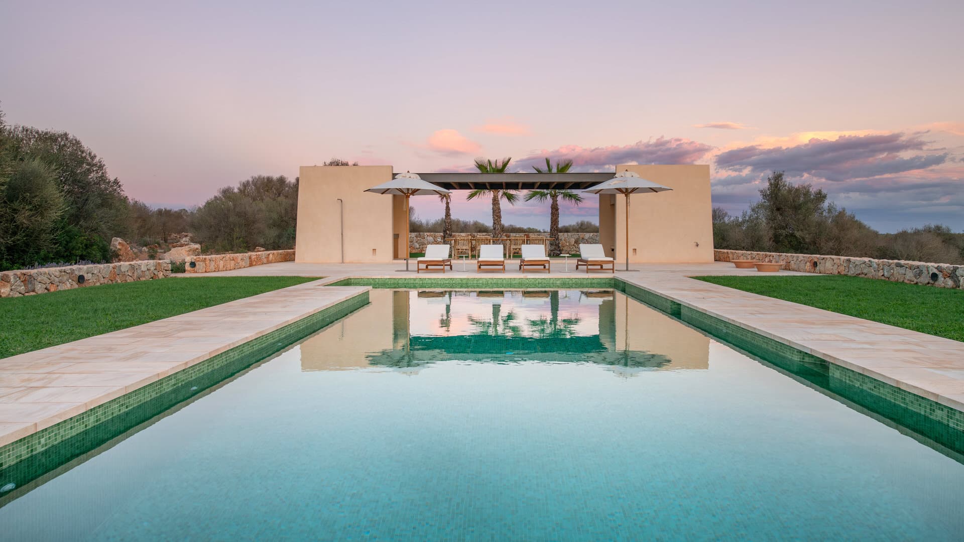 Die weitläufige Terrasse mit atemberaubendem Weitblick und der private Pool laden zum Entspannen ein – hier können Sie die Seele baumeln lassen und die Ruhe der Natur genießen. Eine Photovoltaikanlage und nachhaltige Baumaterialien ermöglichen umweltbewusstes Wohnen auf Mallorca.