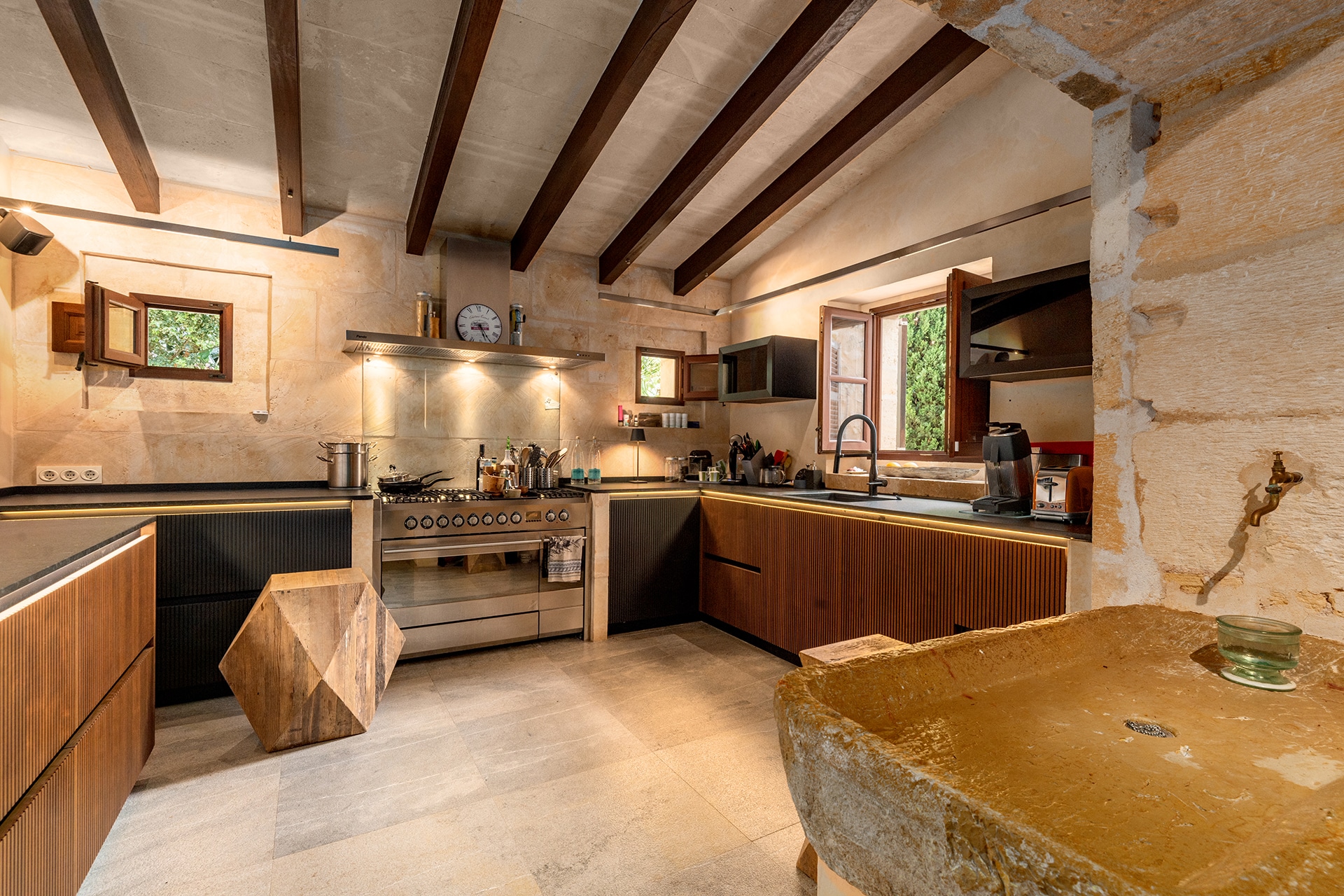 Die Küche ist besonders beeindruckende weil sie hochmodern, geschmackvoll dem Stil der Finca angepasst und komplett ausgestattet ist mit Marken Elektrogeräten. Diese Küche lässt wahrlich keine Wünsche offen!
