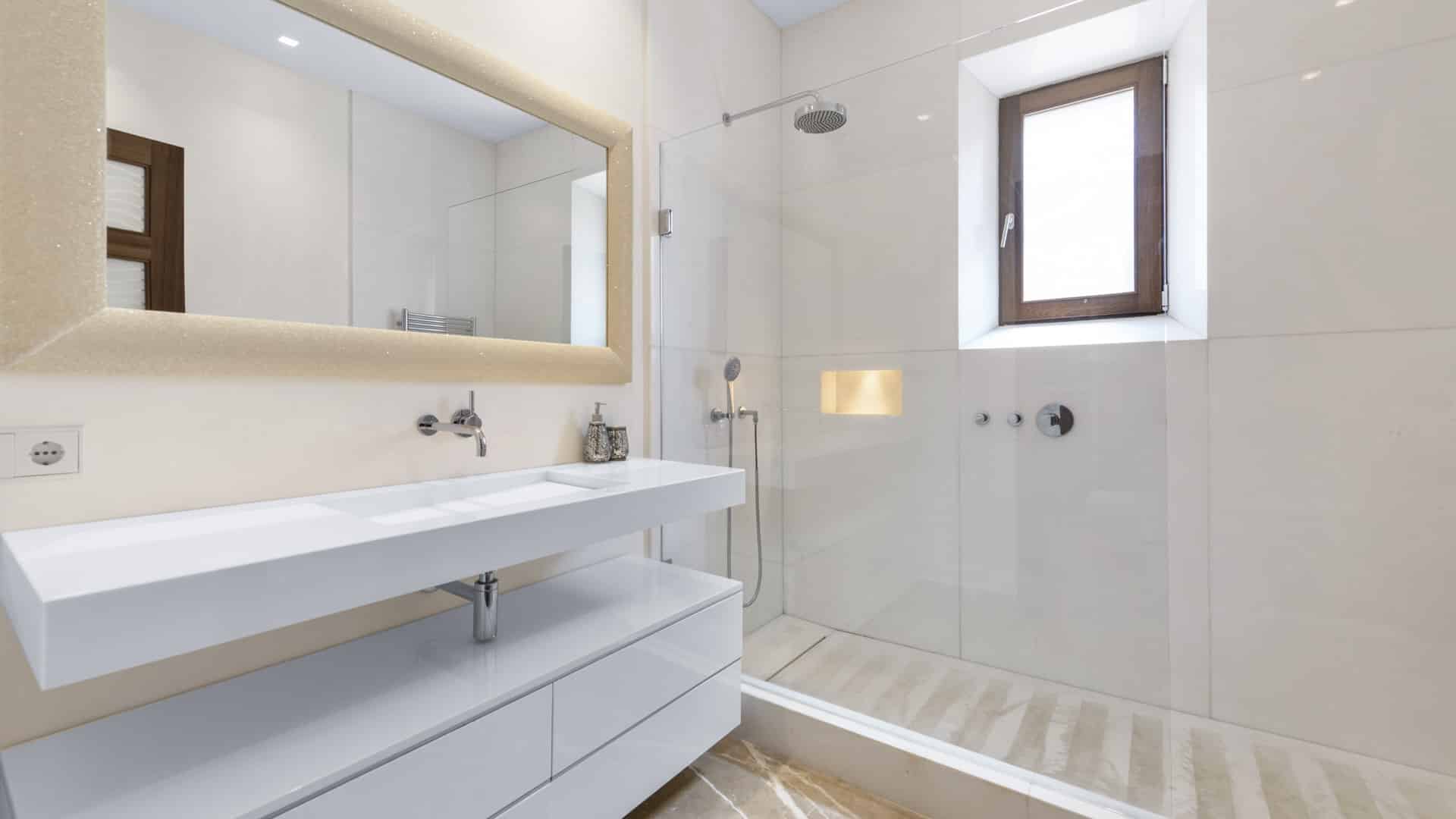 Von den fünf Schlafzimmern, befinden zwei Suiten mit Doppelbett, Kingsize Regendusche, Bidet und Badewanne, im Bad en suite und ein, je ca. 10m2 großes Ankleidezimmer auf erster Ebene.