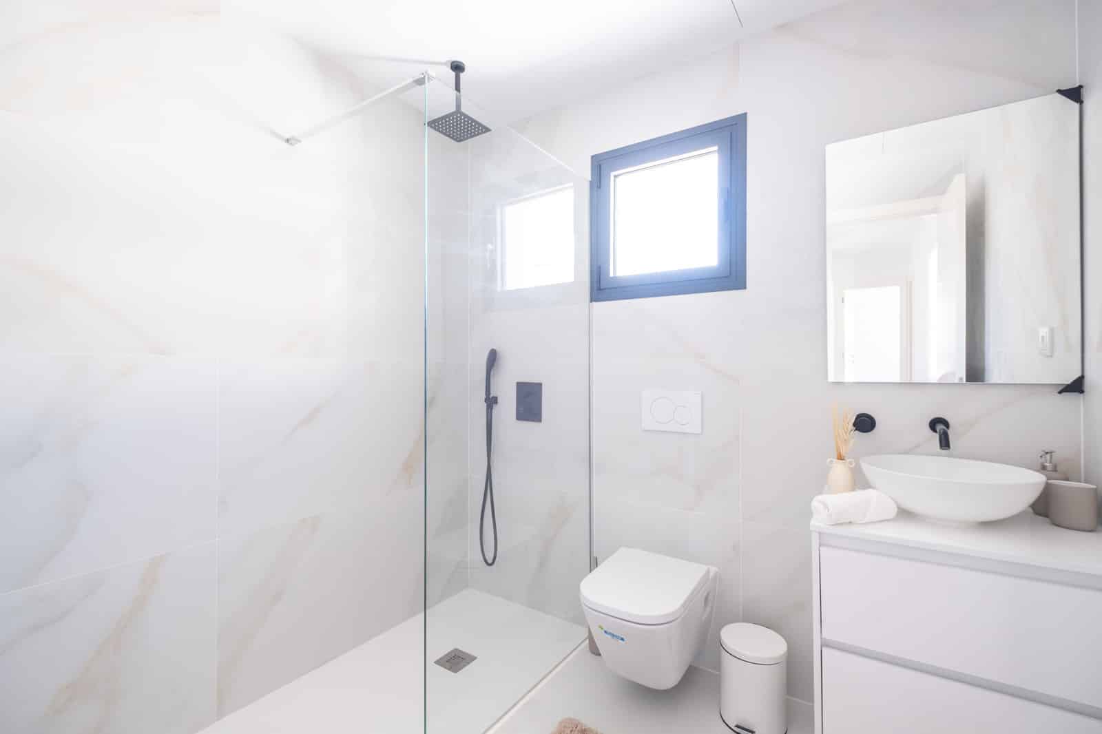 ergänzt – jeweils mit bodengleichen Duschen, modernen Armaturen und zeitloser Fliesen-
