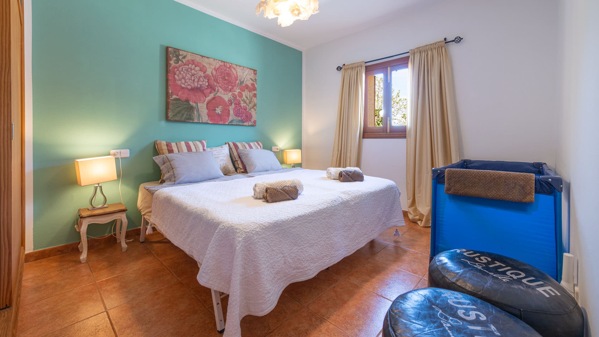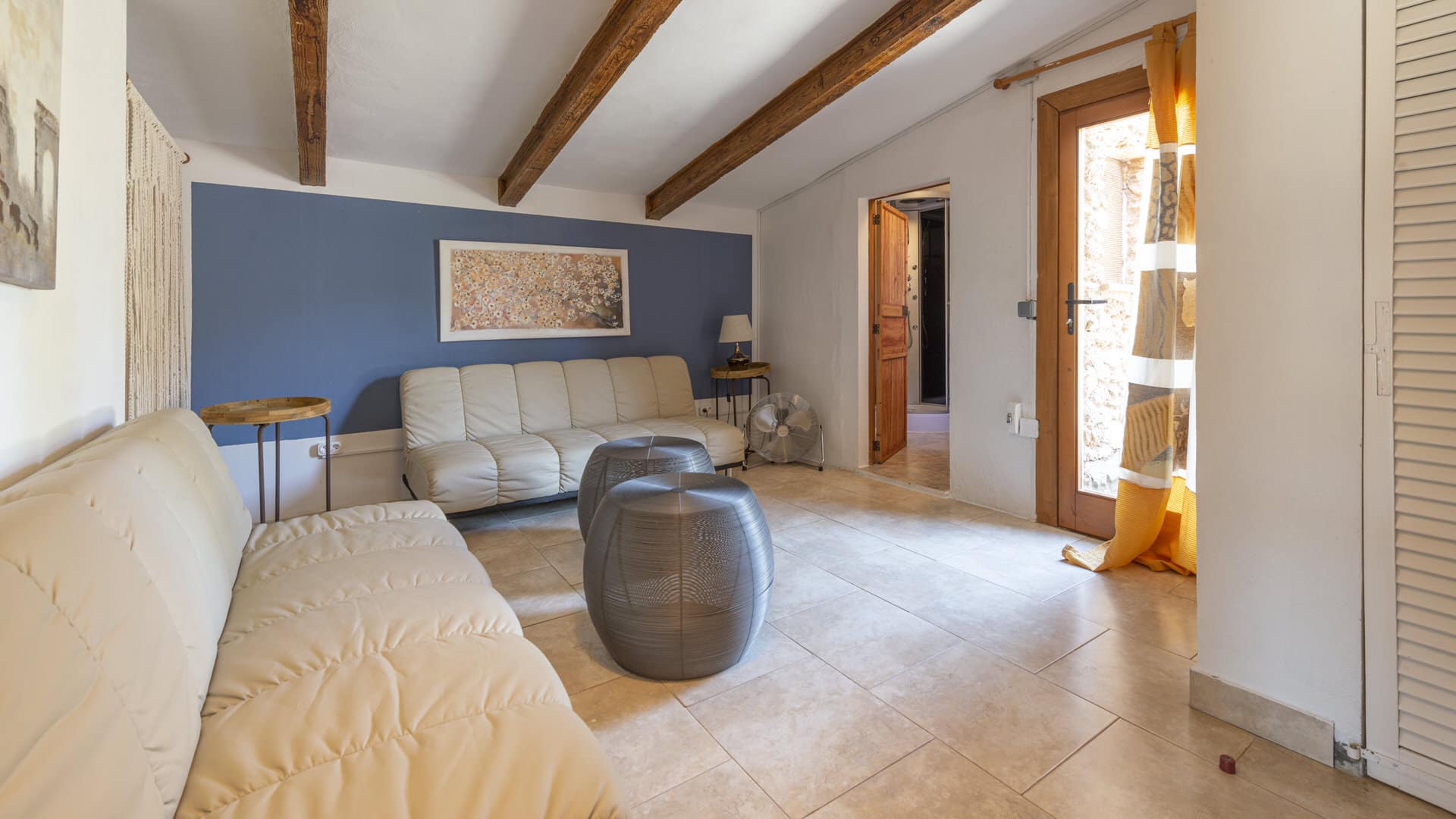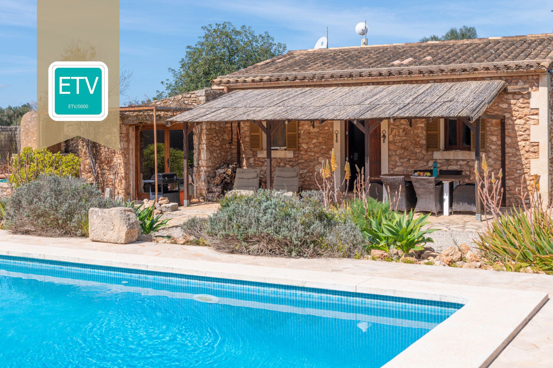 Im Außenbereich der Finca finden Sie mehrere, teilweise überdachte Terrassen, ein großer Pool, weitläufige Gartenflächen und einen Grillplatz mit altem mallorquinischen Holzofen.