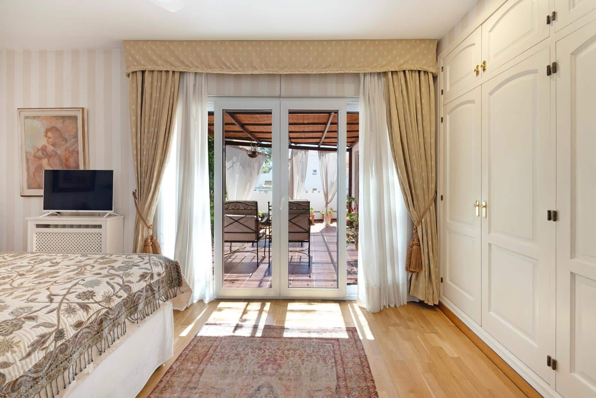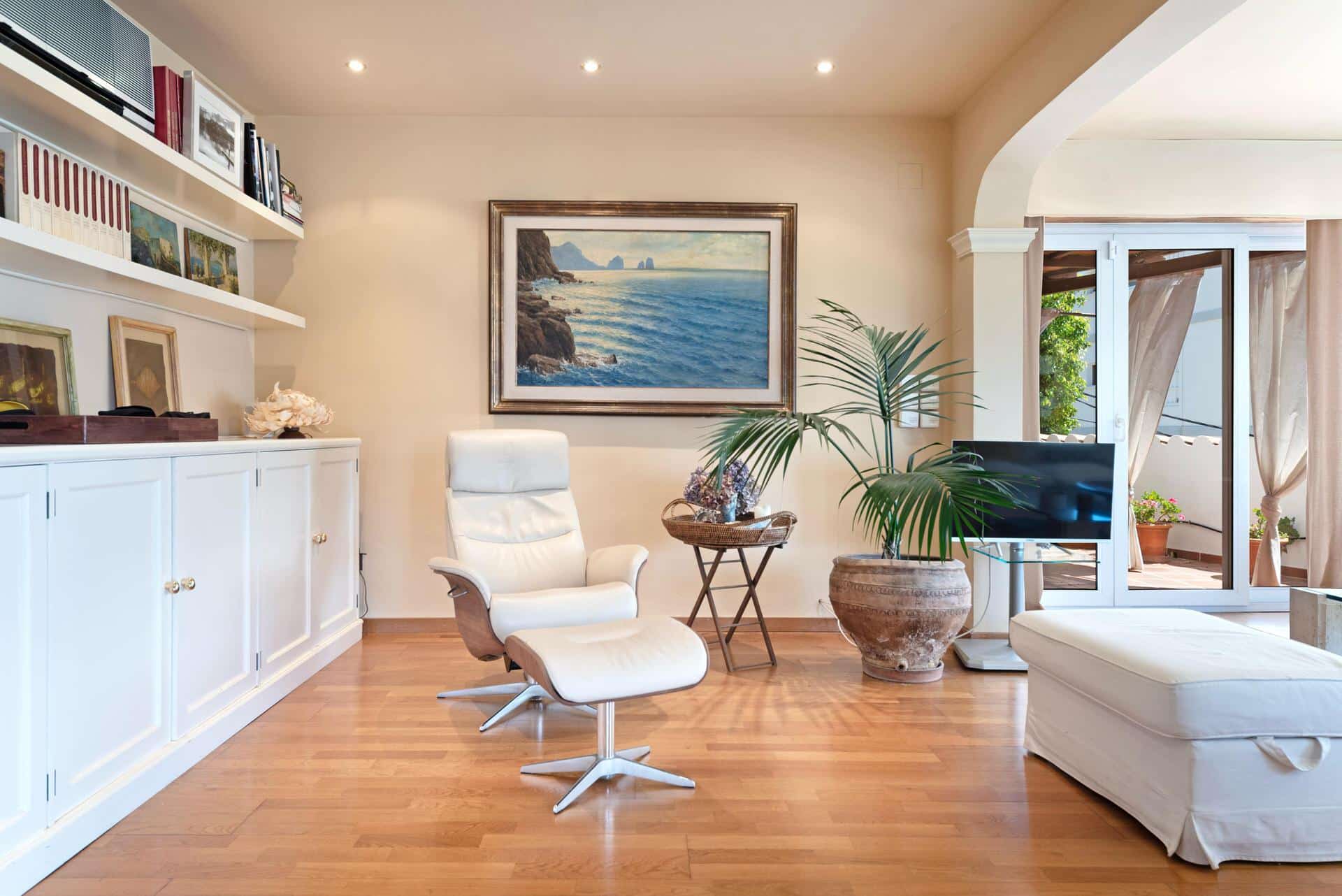 Im Obergeschoss befinden sich ein gemütliches Wohnzimmer, zwei weitere Schlafzimmer, ein komplettes Badezimmer und eine private Terrasse.